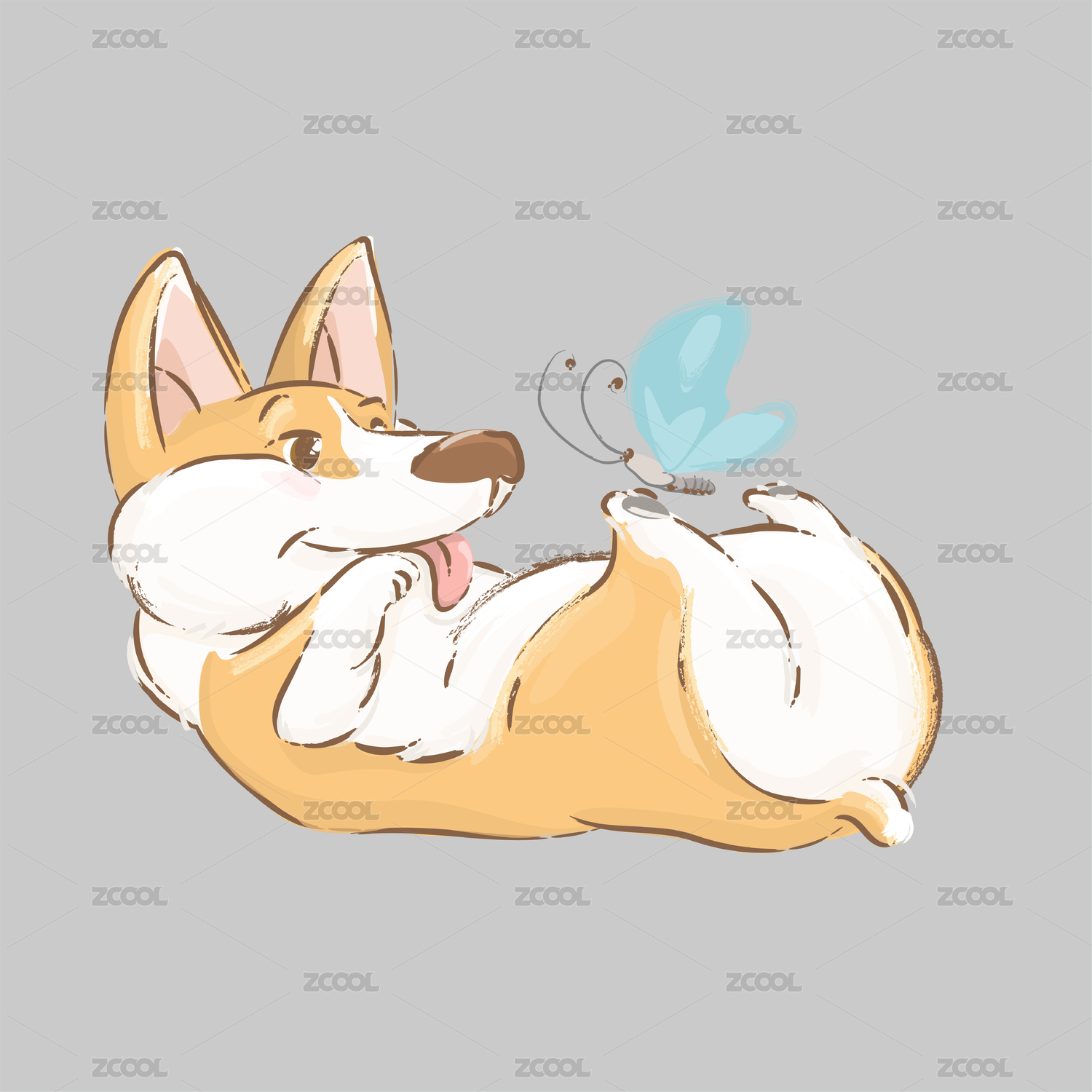 3D渲染的可爱小狗柯基犬插画