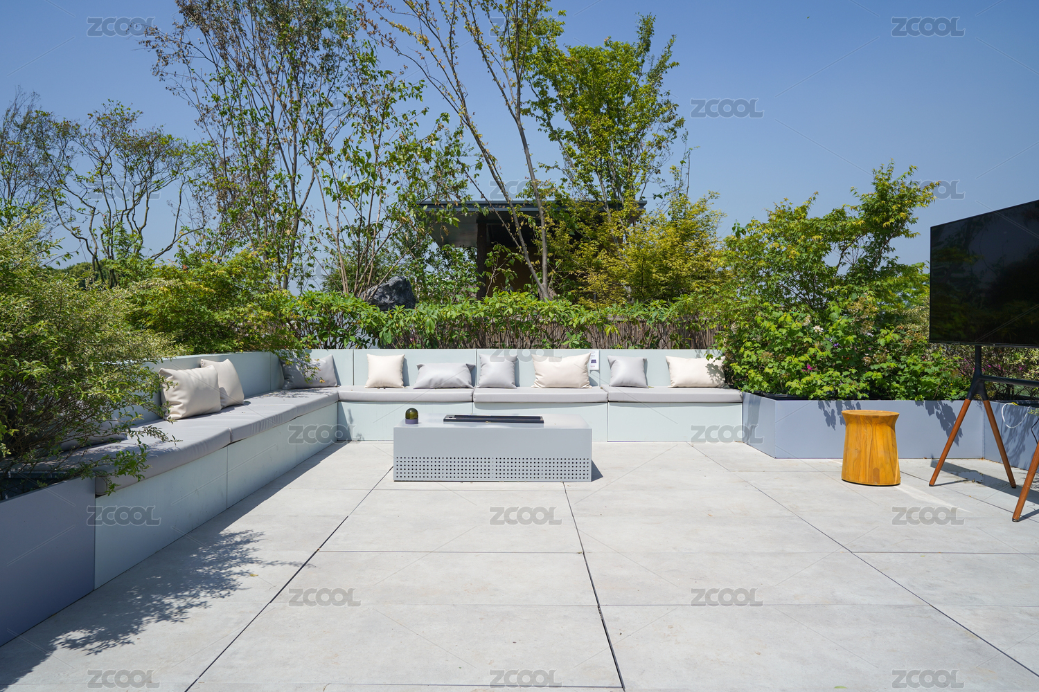 现代极简庭院石材铺装户外沙发软装