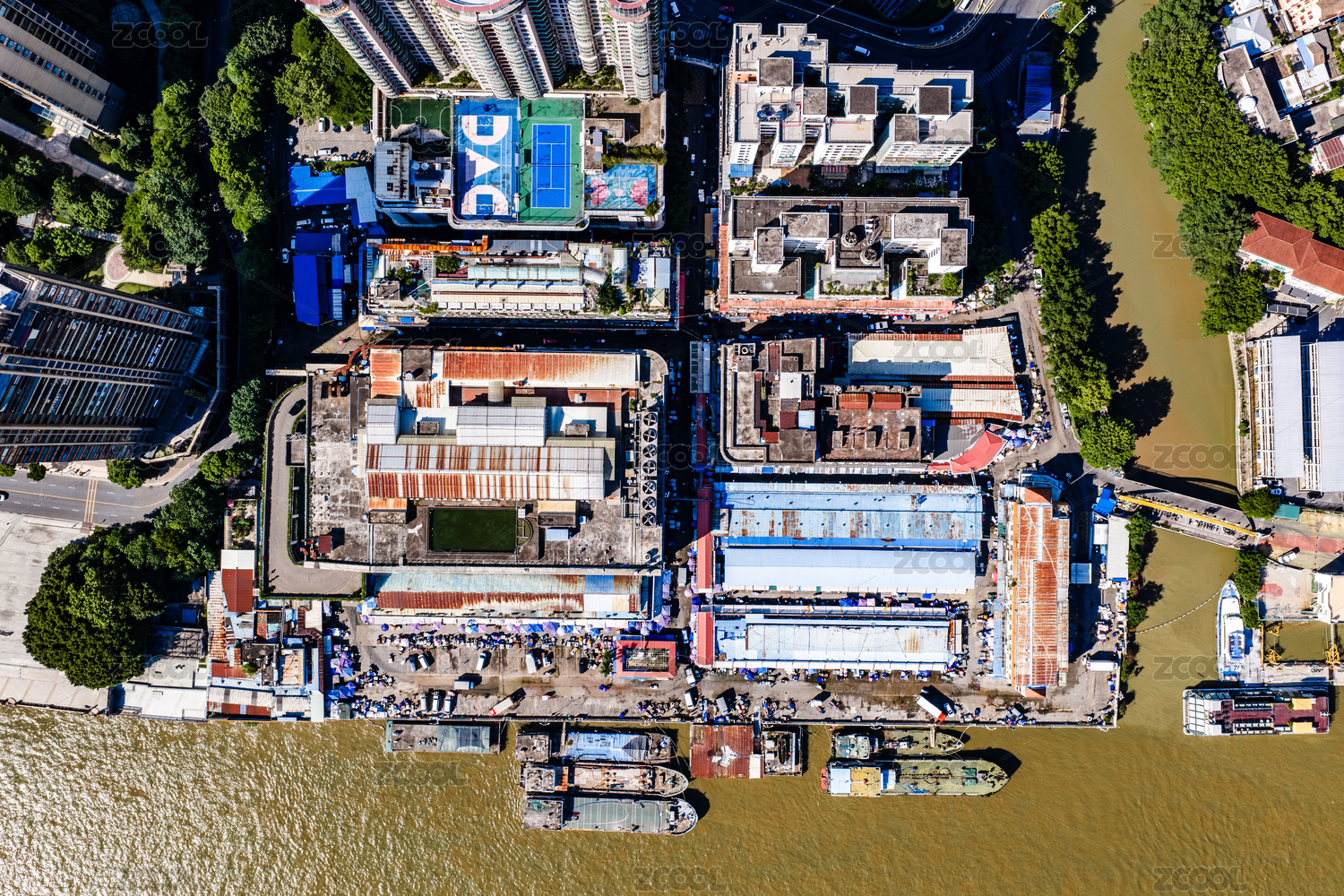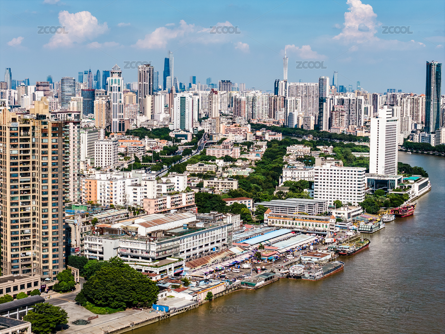 航拍中国广州黄沙水产交易市场