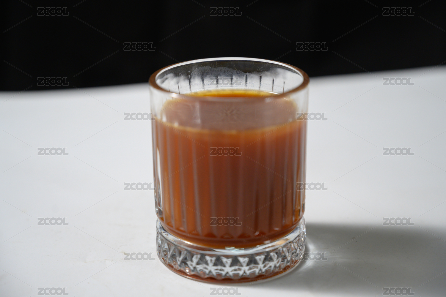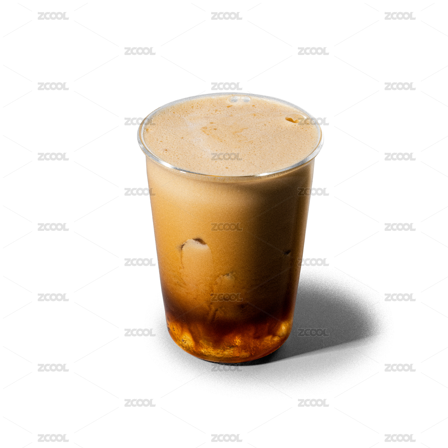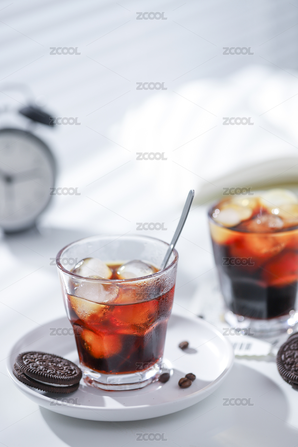 白色桌面上有一杯流沙冰美式咖啡