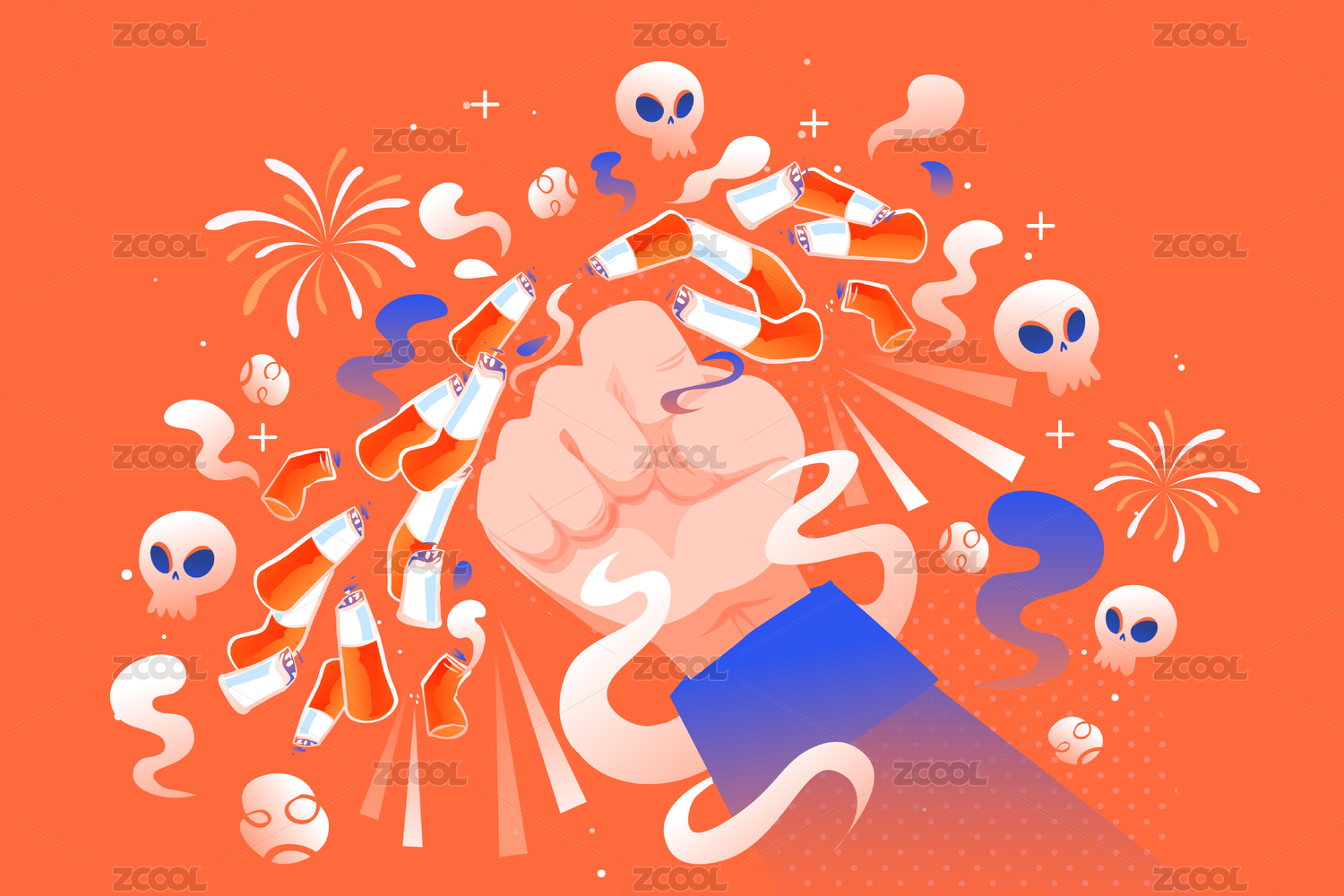 世界无烟日禁烟熄烟公益科技风矢量插画