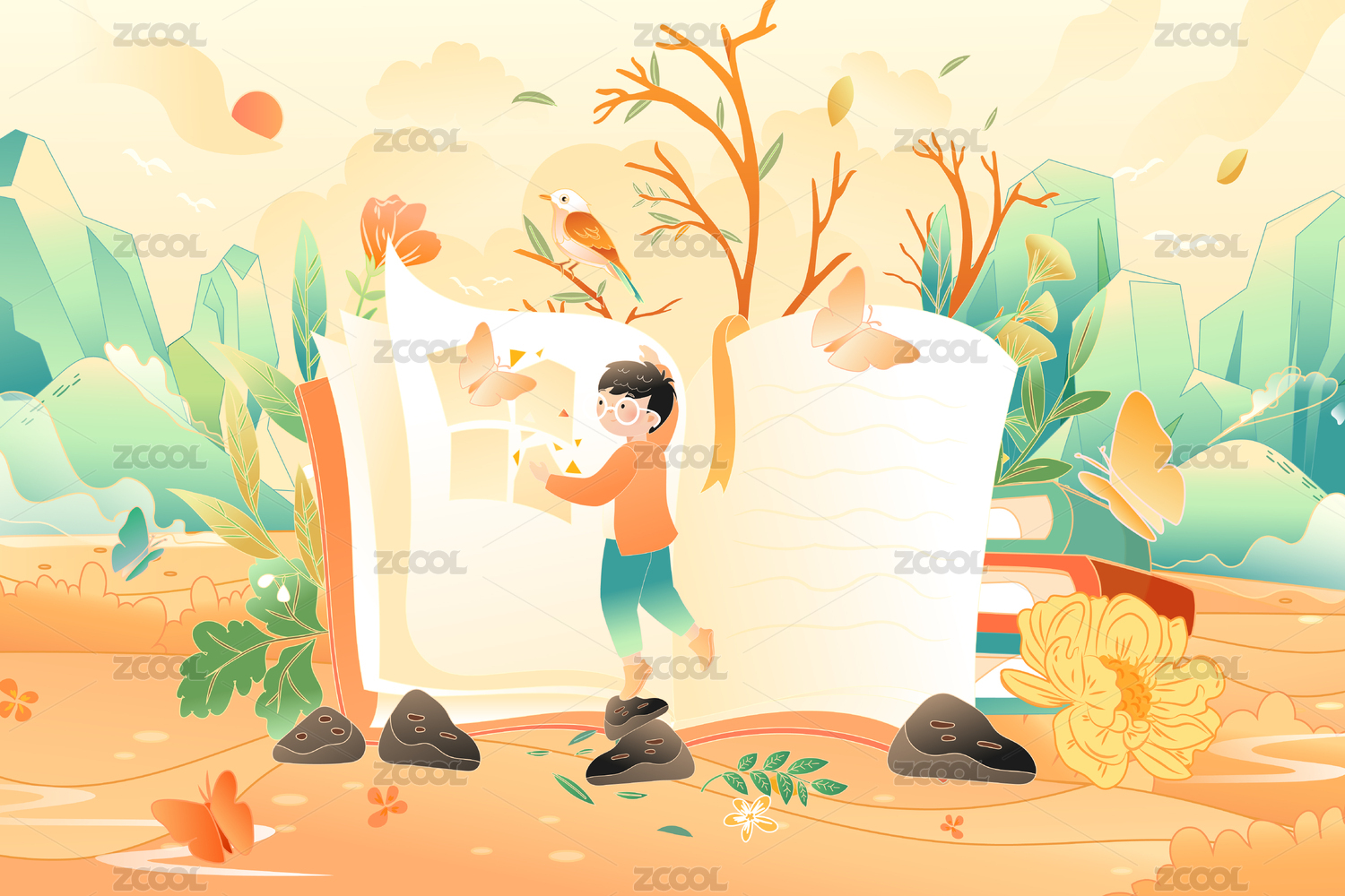 中国风教育文学故事插画