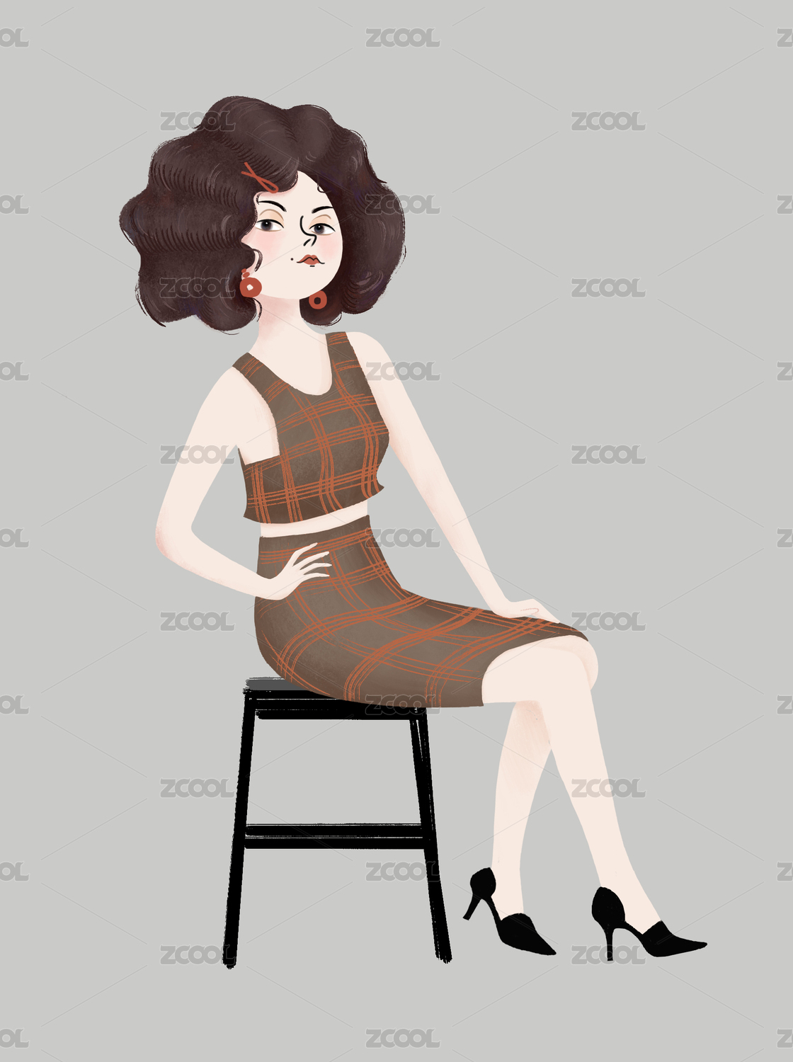 黑白优雅带有一丝傲慢的仰视视角的女性插画