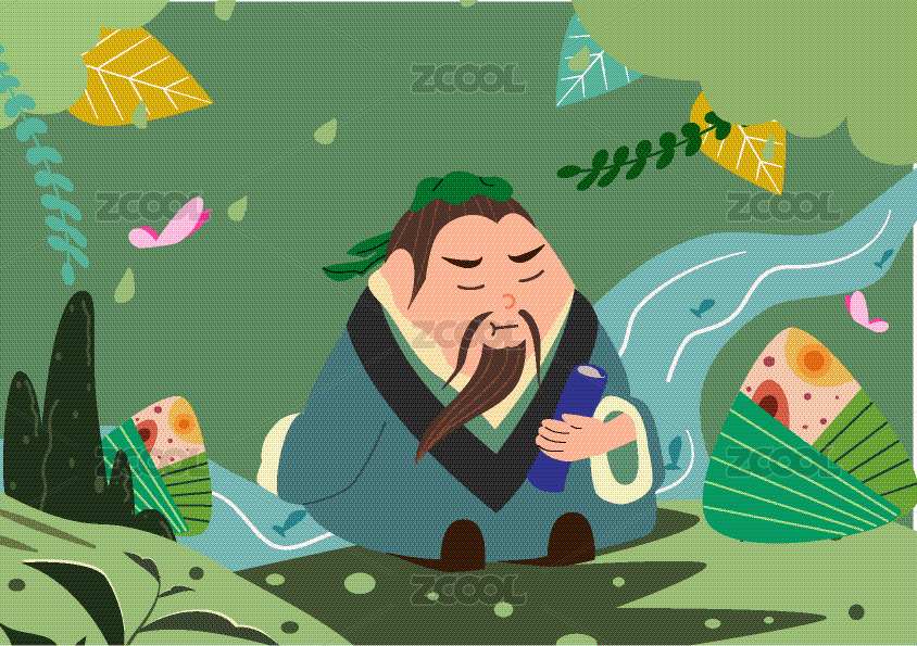 卡通手绘端午节古人屈原插画