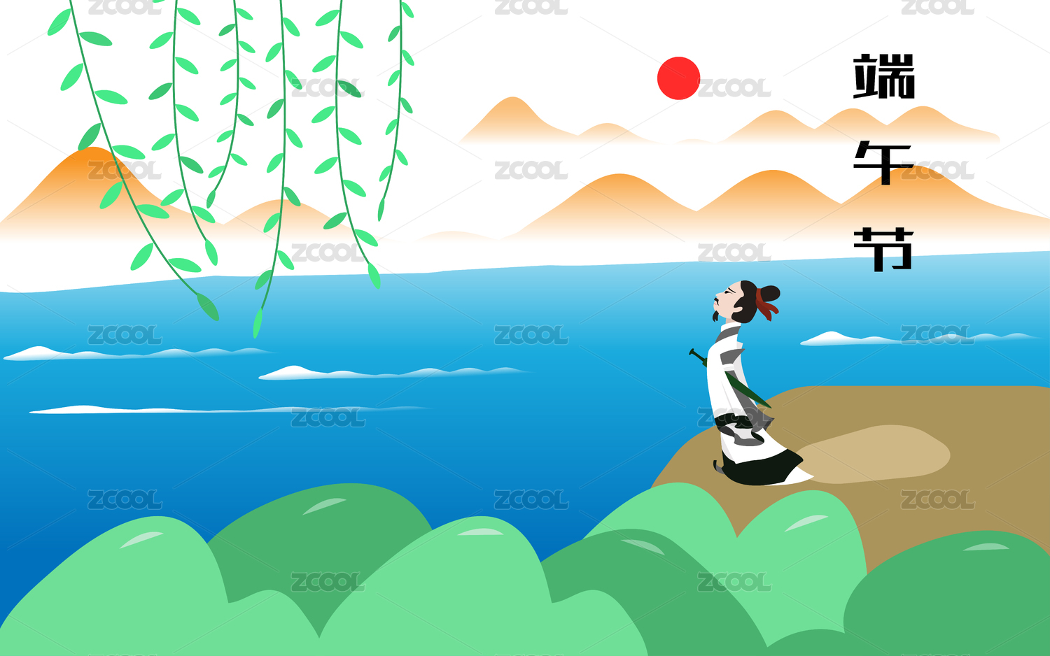 端午节纪念屈原古代神话传说传统节日插画