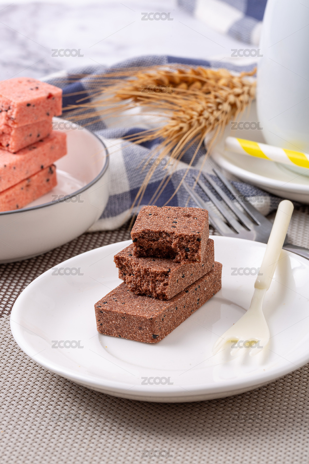 灰白色纹理背景切块布朗尼