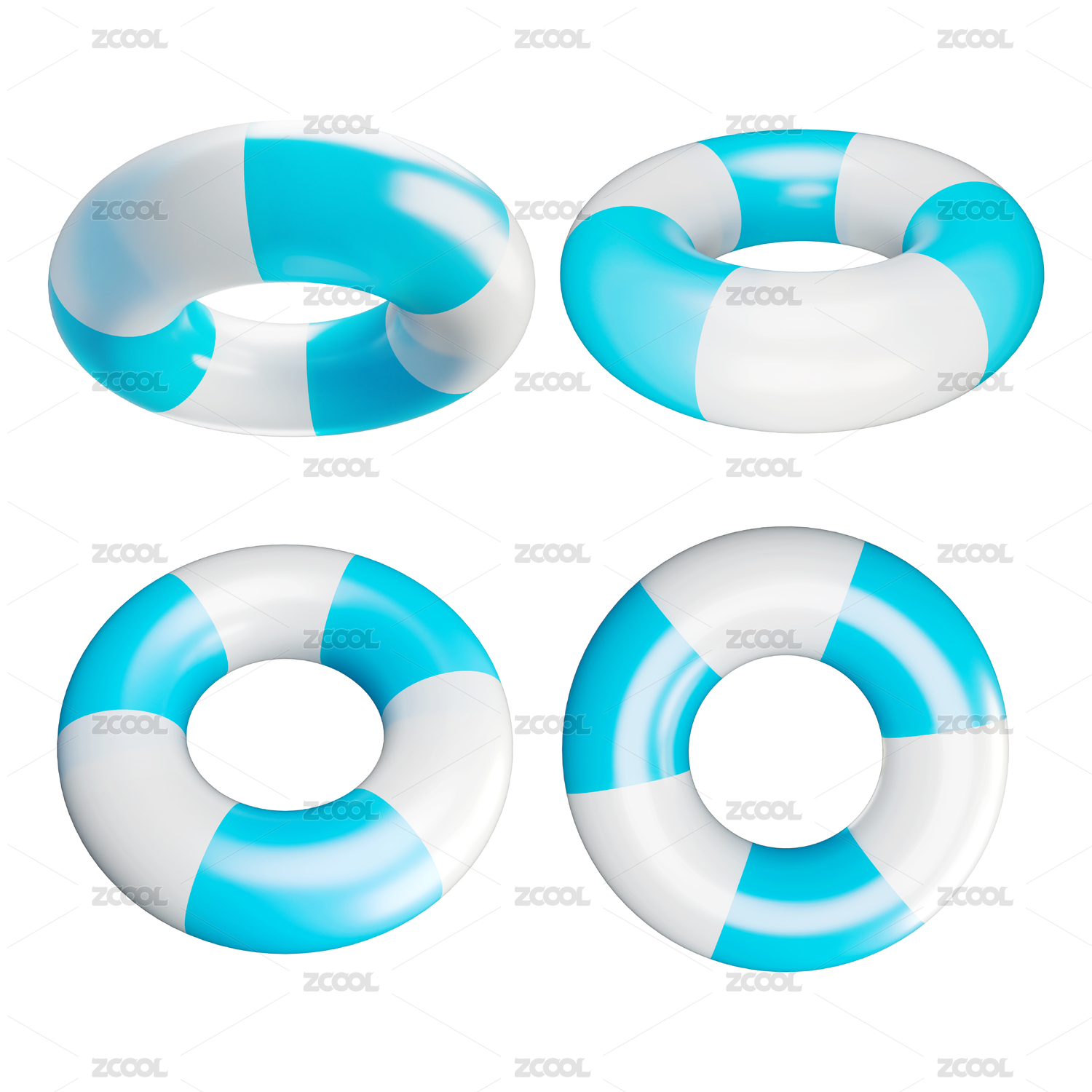 3D渲染立体元素泳圈泳池夏日清凉