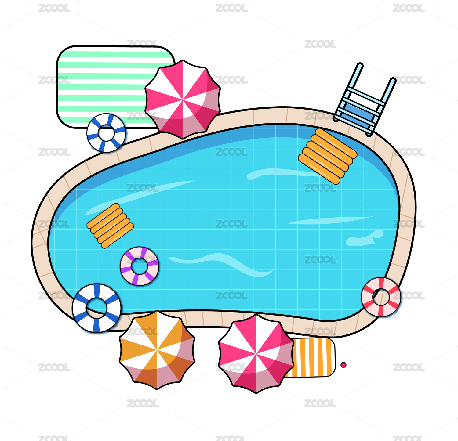 夏天泳池欢乐插画