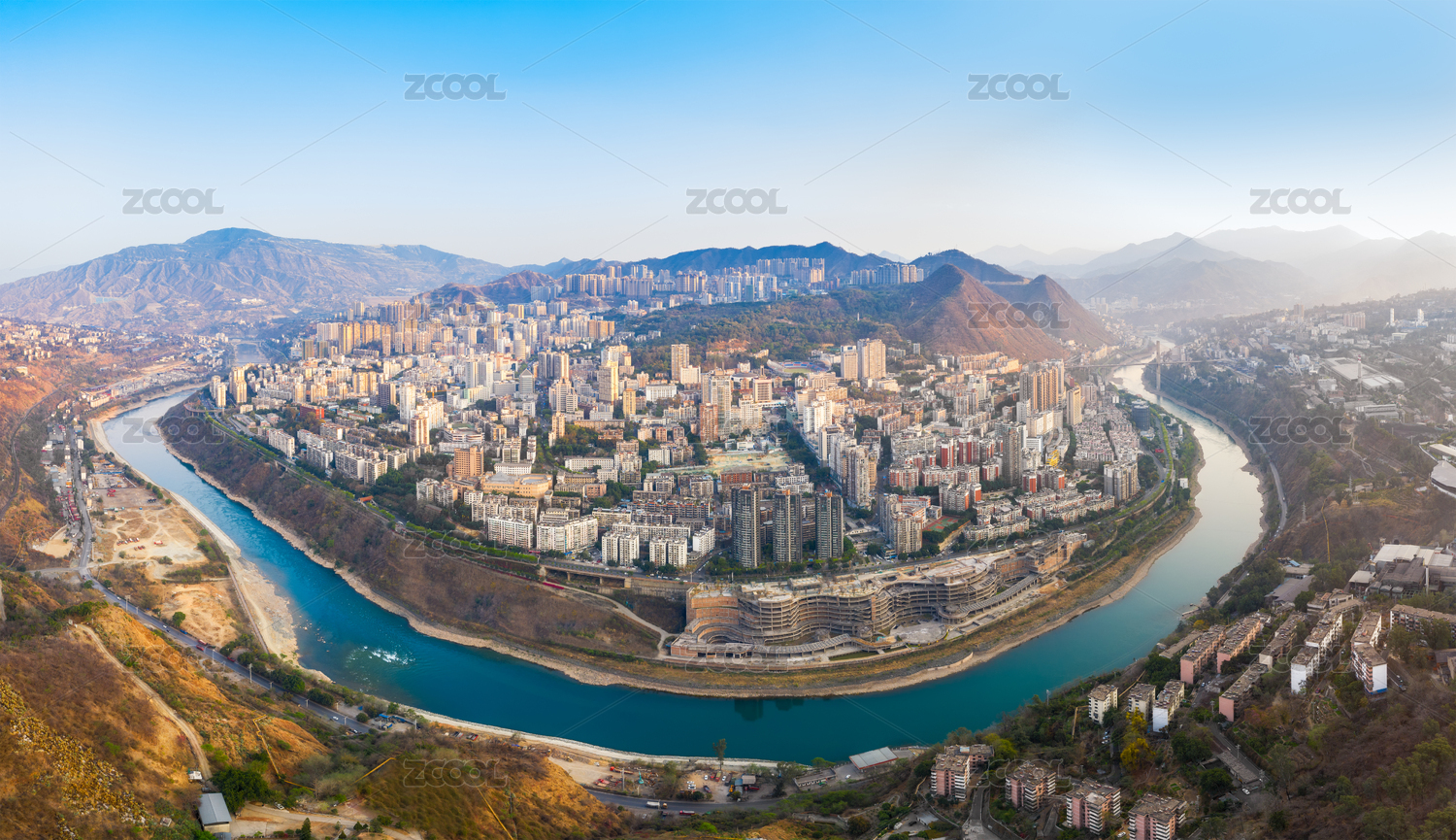 四川攀枝花东区金沙江南岸早晨城市风光