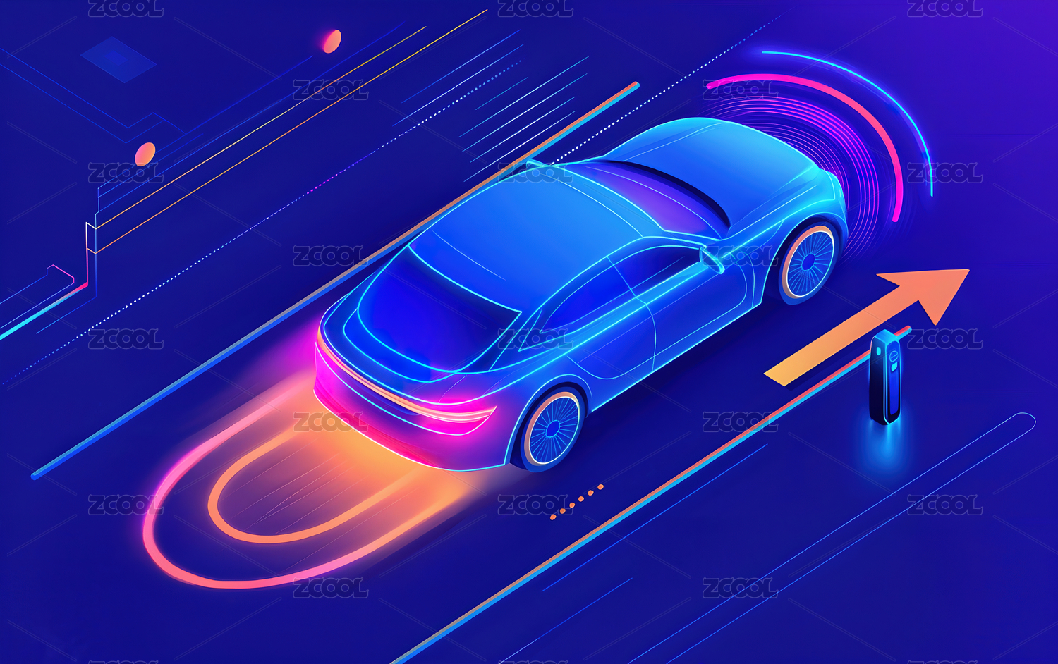 新能源汽车线条3d简洁智能驾驶科技感插画