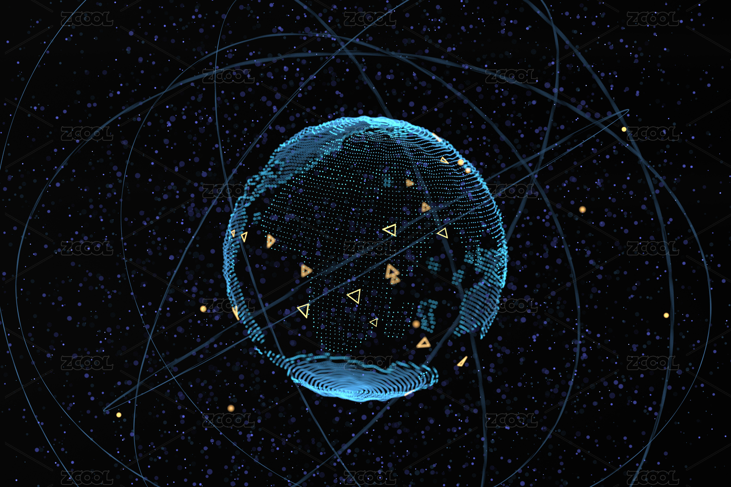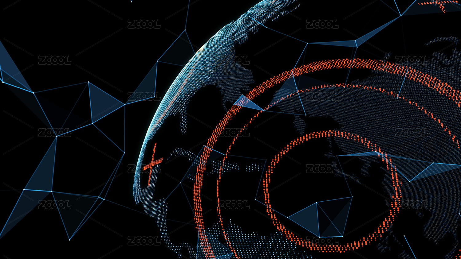 粒子构建数码球体,世界网络科技大数据,全球化、国际化,科学技术概念