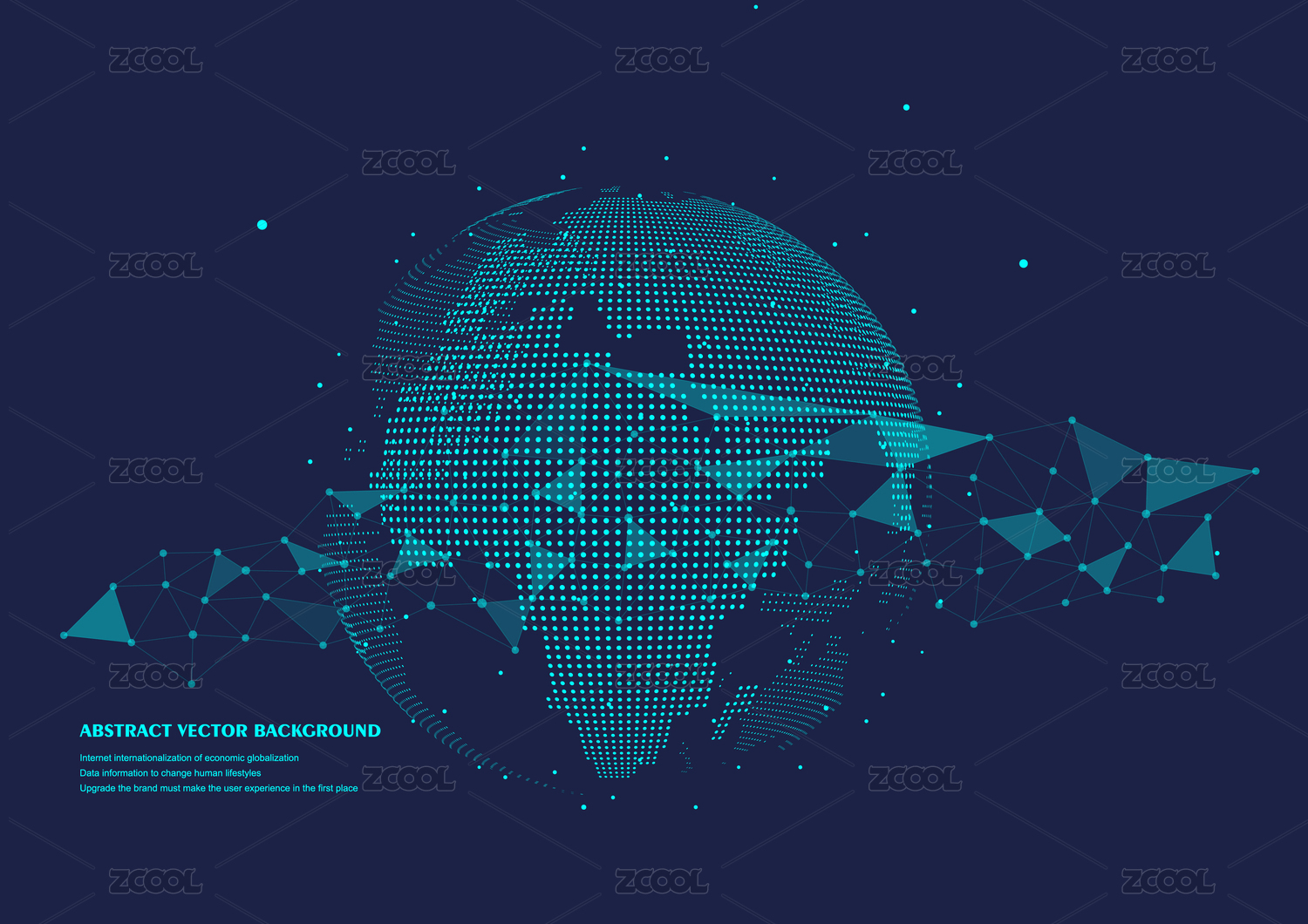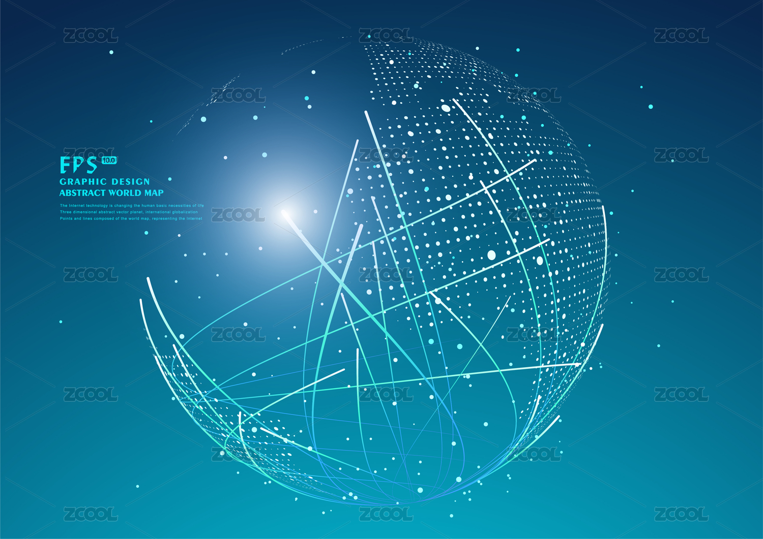 三维抽象矢量星球,寓意全球化、国际化,球形世界地图