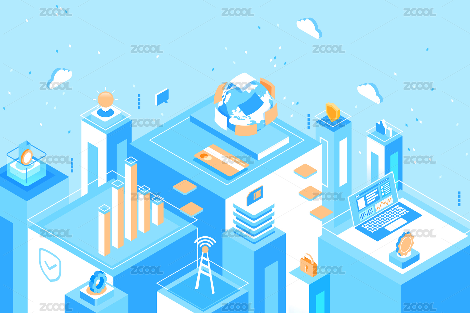 2.5d等距商务金融全球经济矢量插画