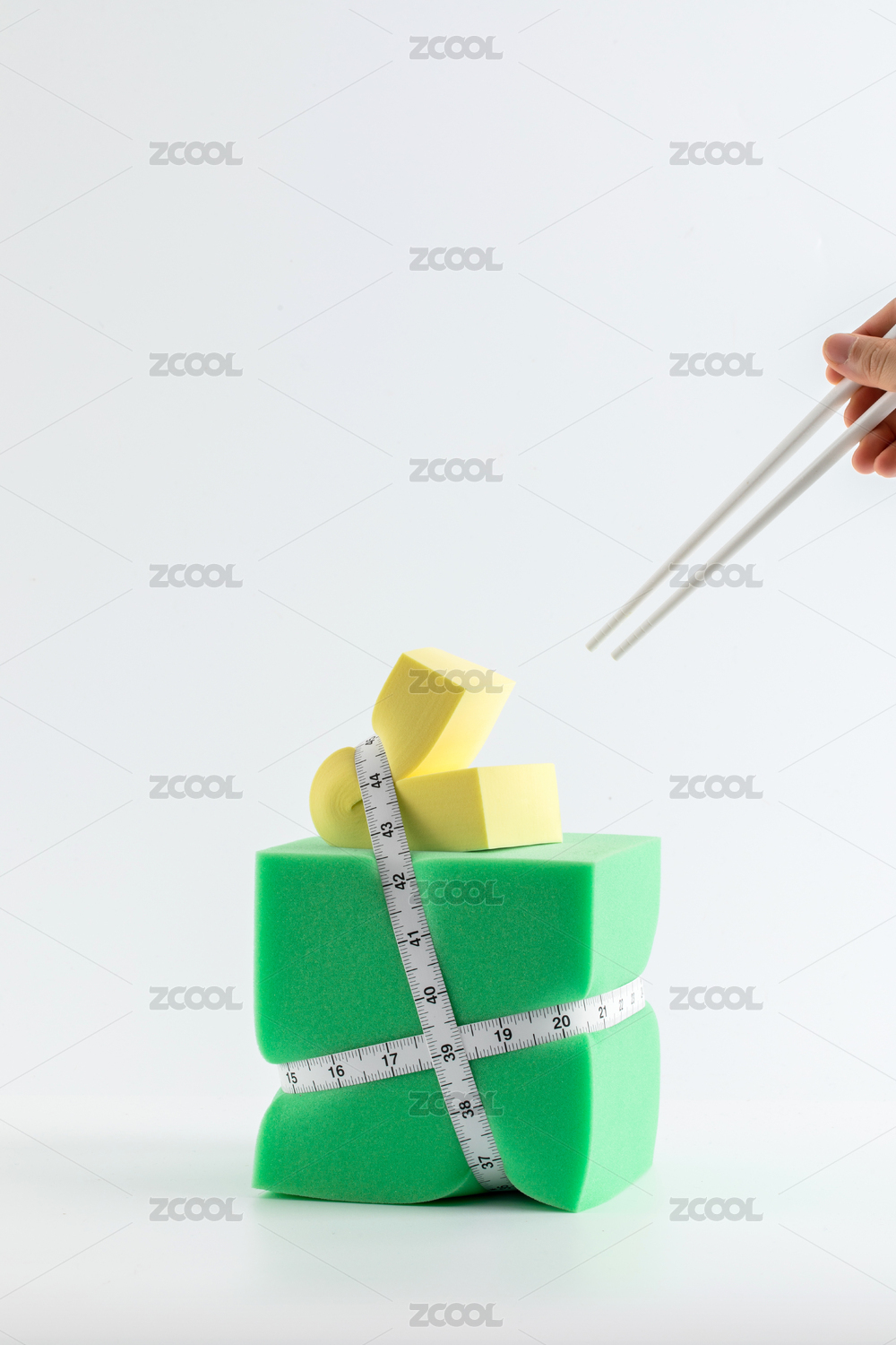 皮尺捆绑着海绵,节食概念