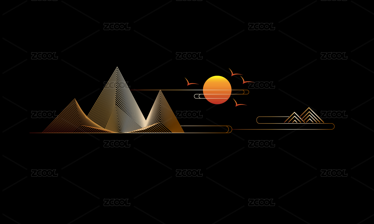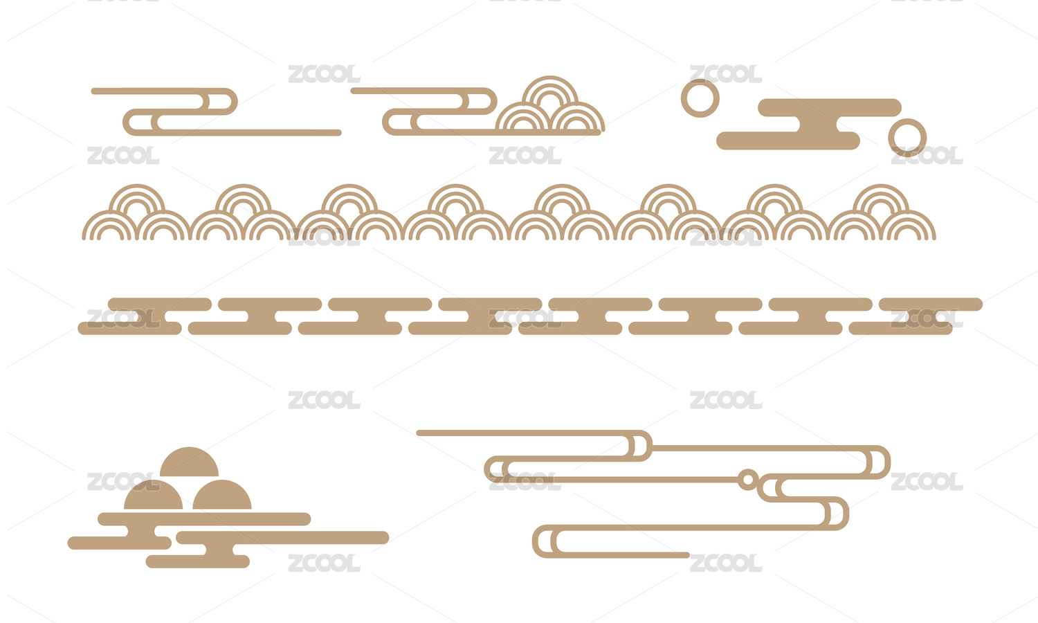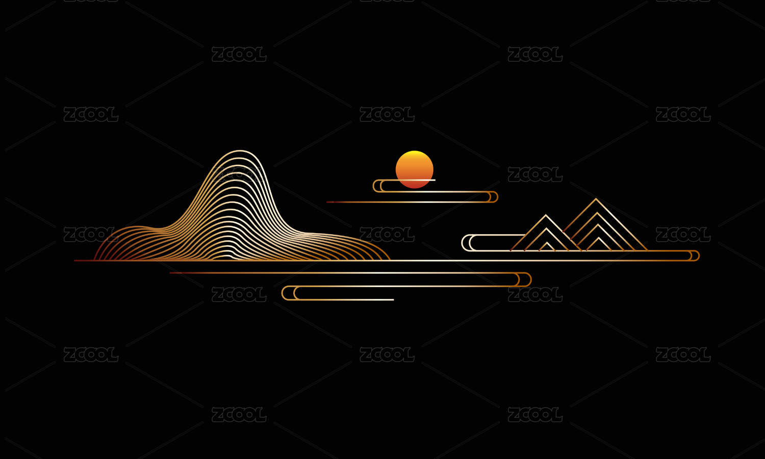 中式线性山纹祥云纹