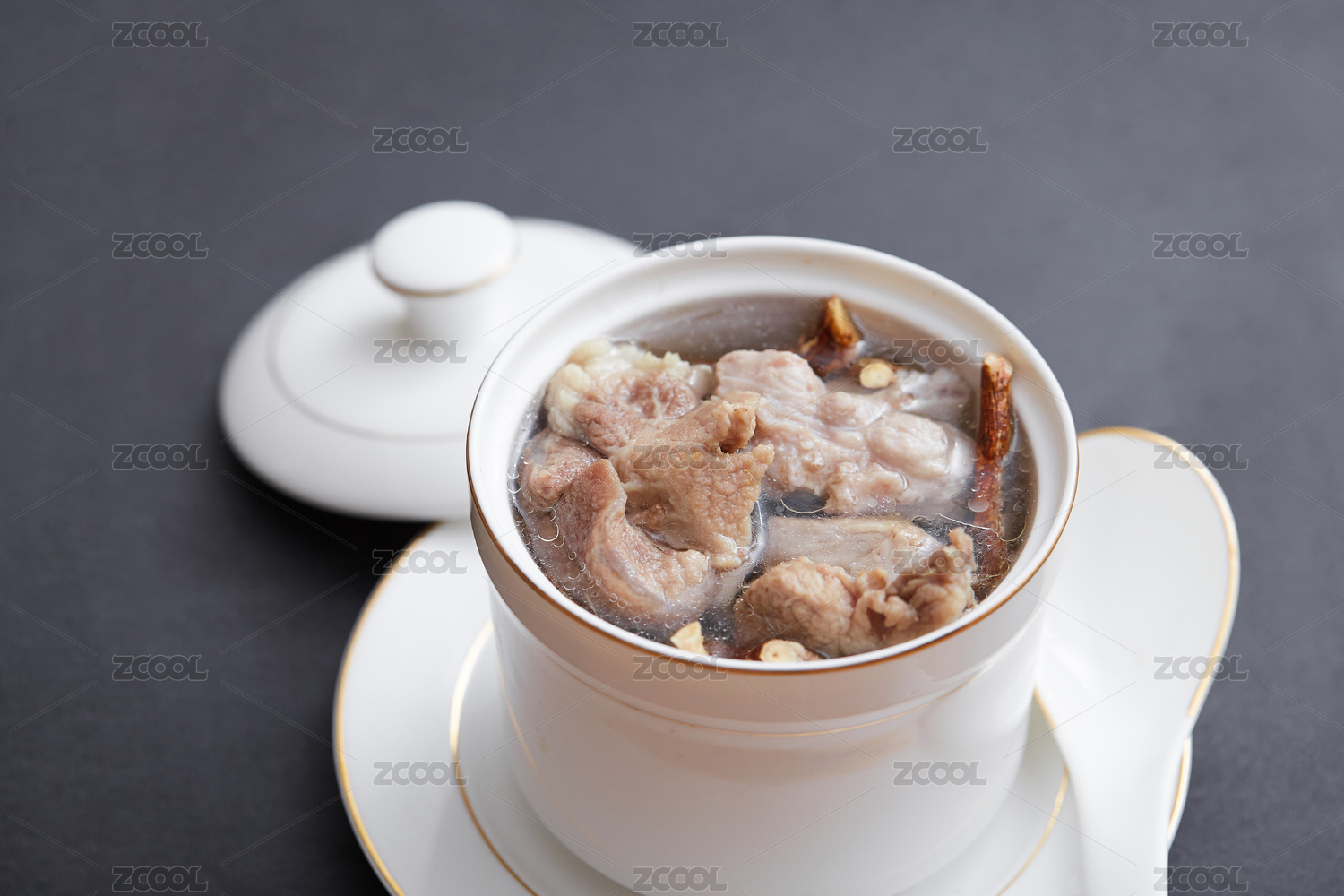 黑色汤锅里冒着热气的羊肉萝卜汤