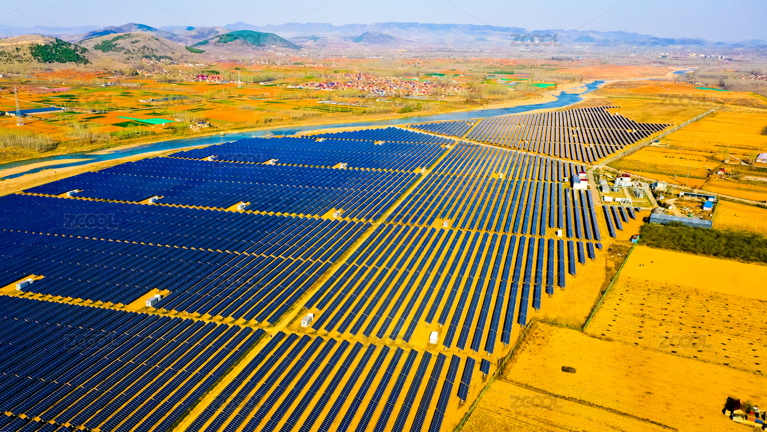 航拍湖南岳岳阳湘阴岭北镇太阳能发电站