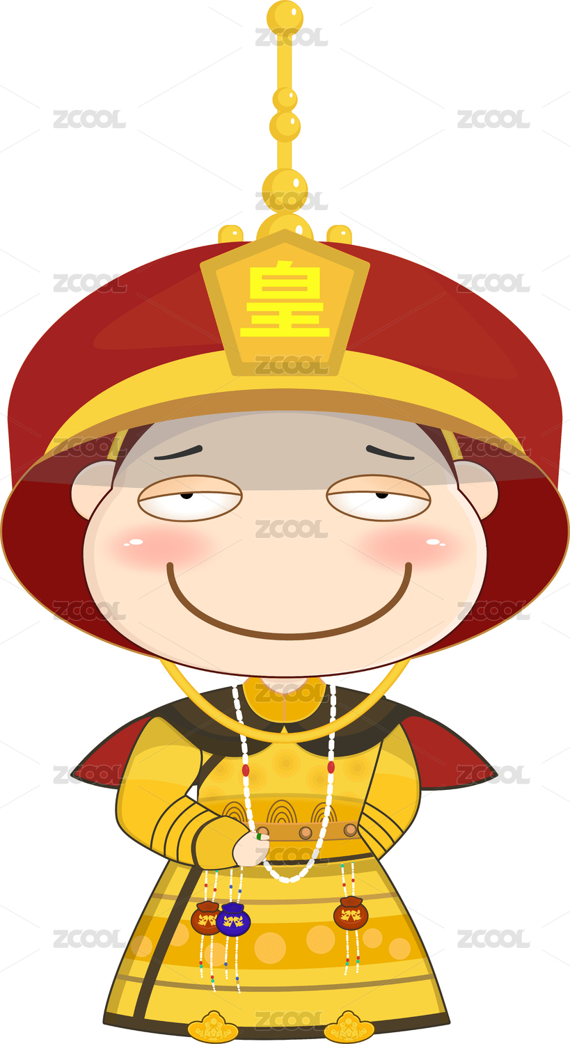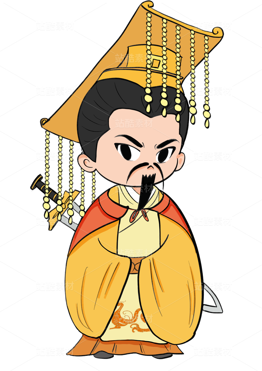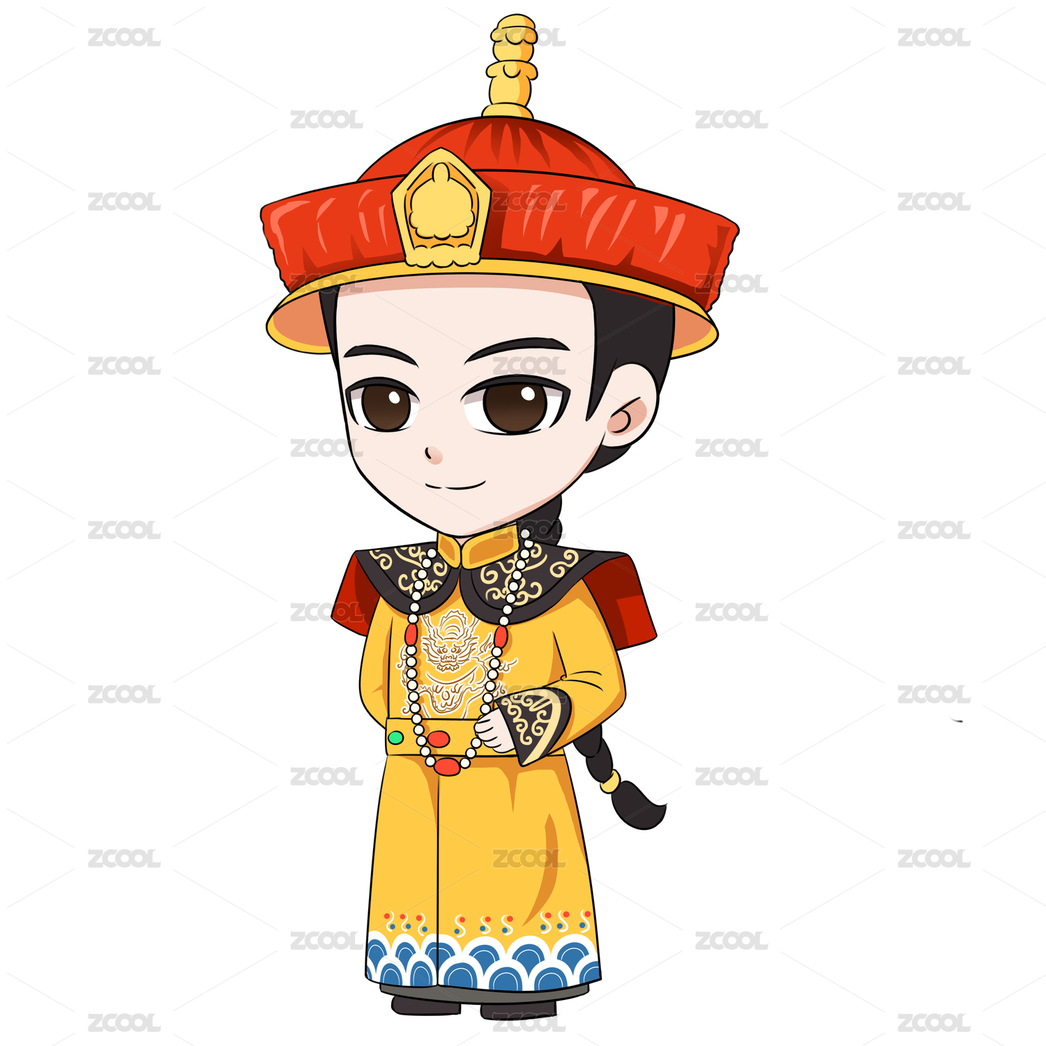 唐朝皇帝与贵妃站立全身像卡通人物插画