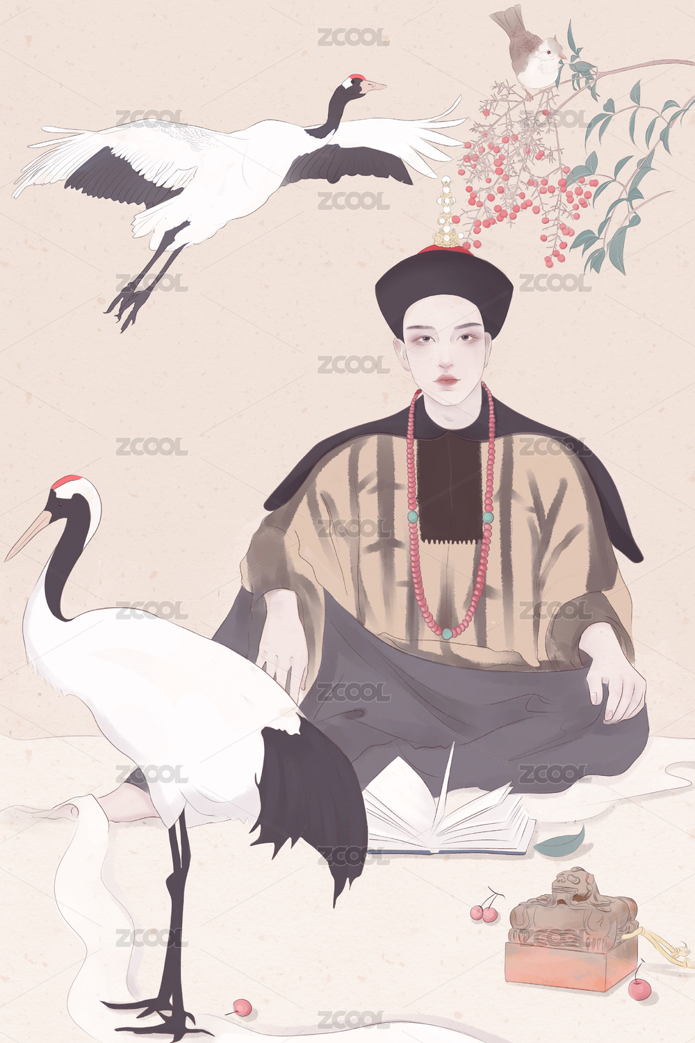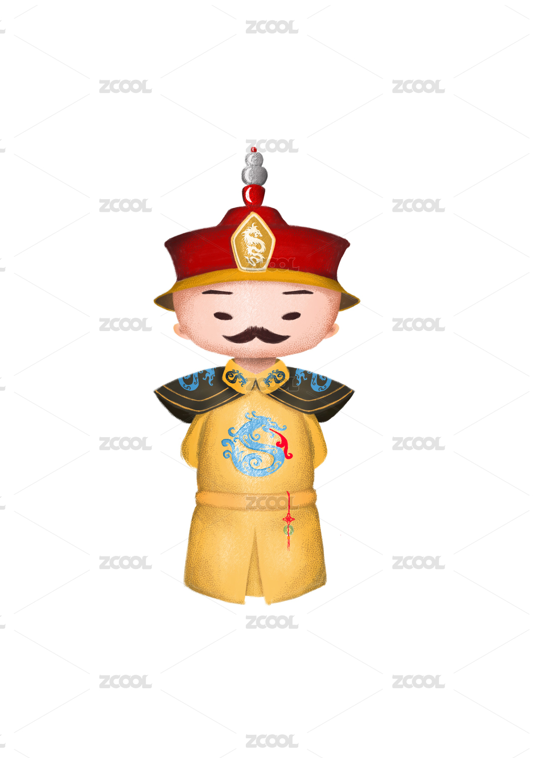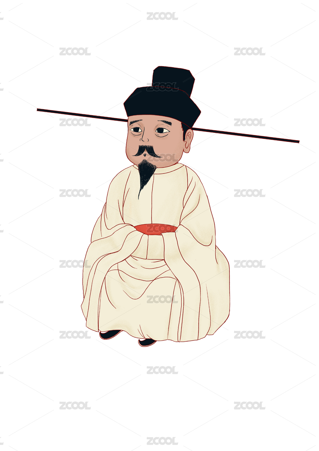 唐朝皇帝与贵妃站立全身像卡通人物插画