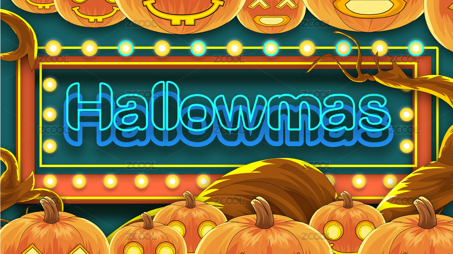 万圣节南瓜灯枯树霓虹灯矢量插画