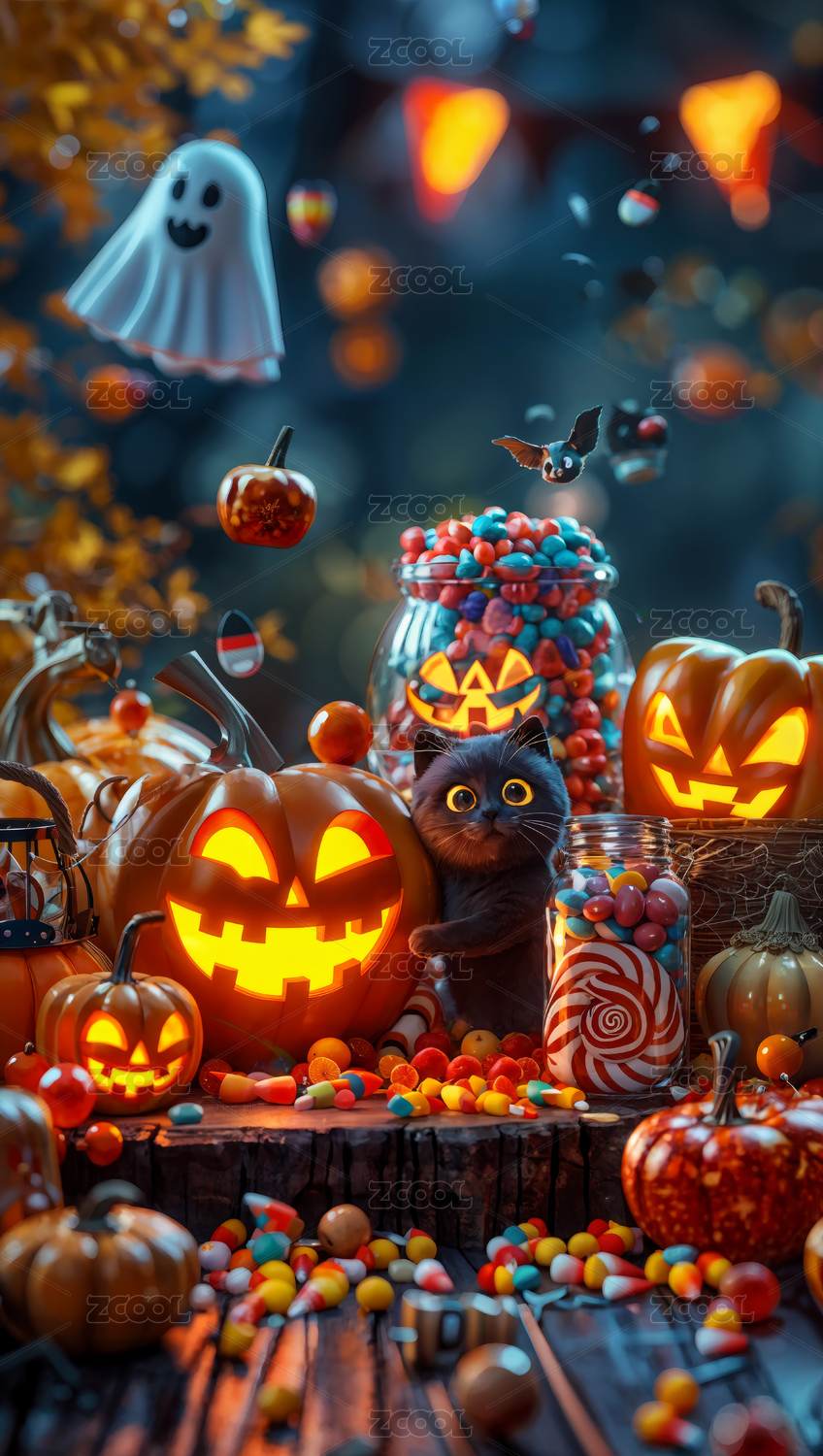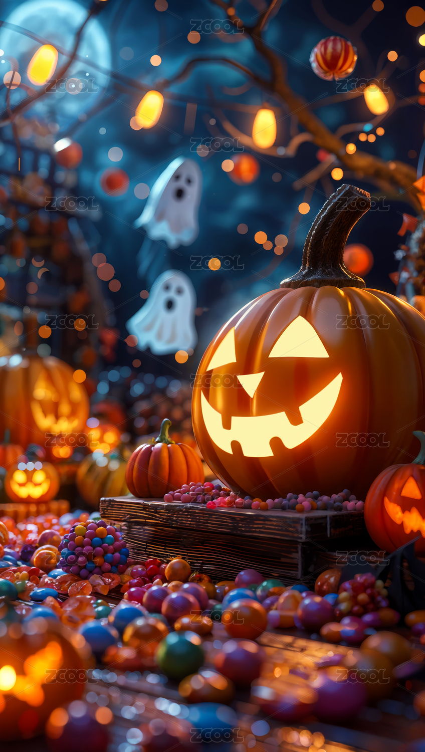 庆祝西方万圣节南瓜灯奇幻夜晚派对节日插画