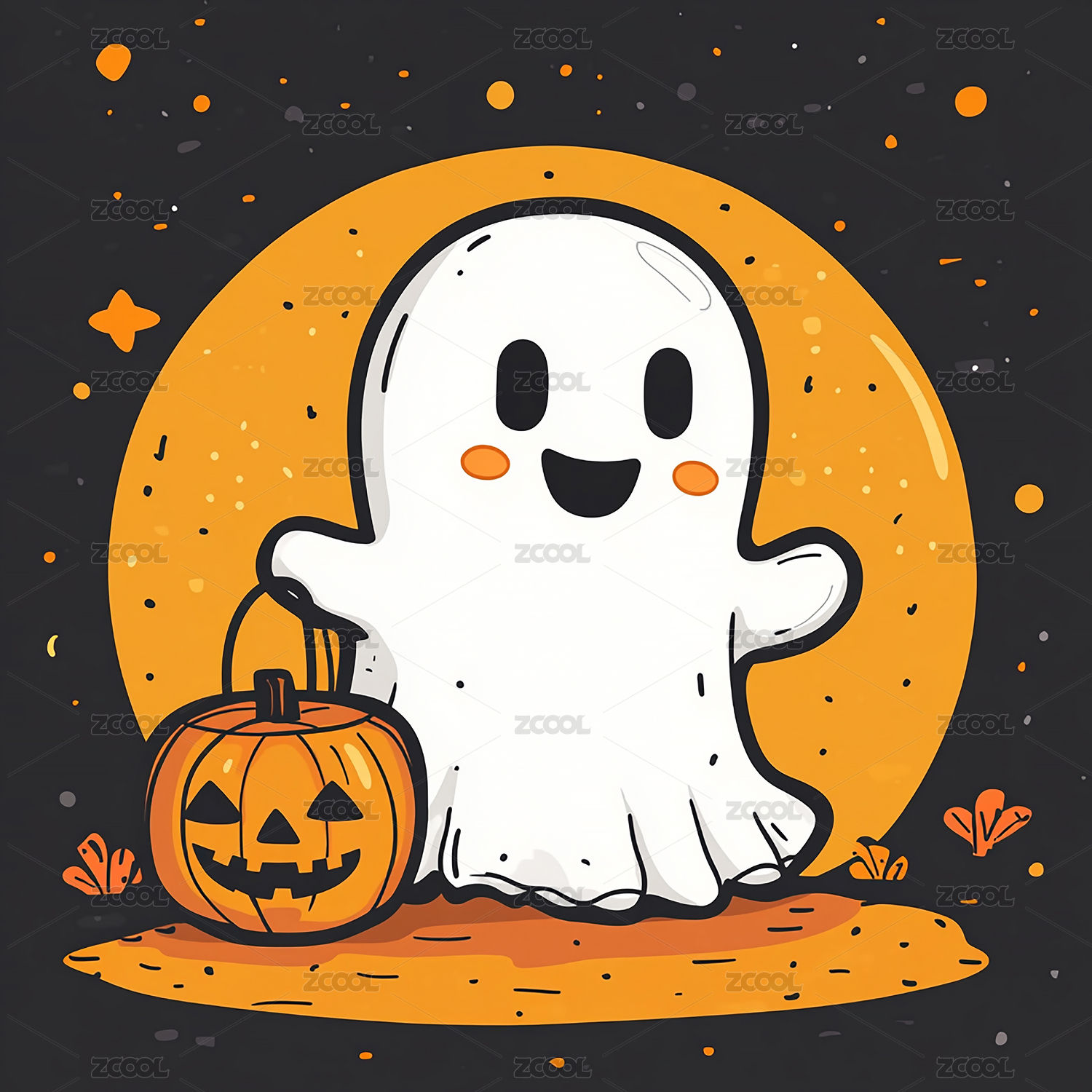卡通风可爱穿泡泡裙女孩拿着南瓜灯儿童插画