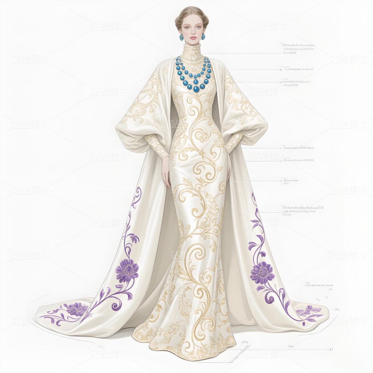 洛可可高定礼服设计手稿:冰裂纹中的文艺复兴
