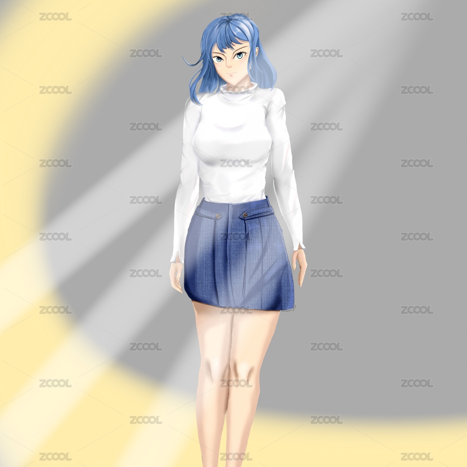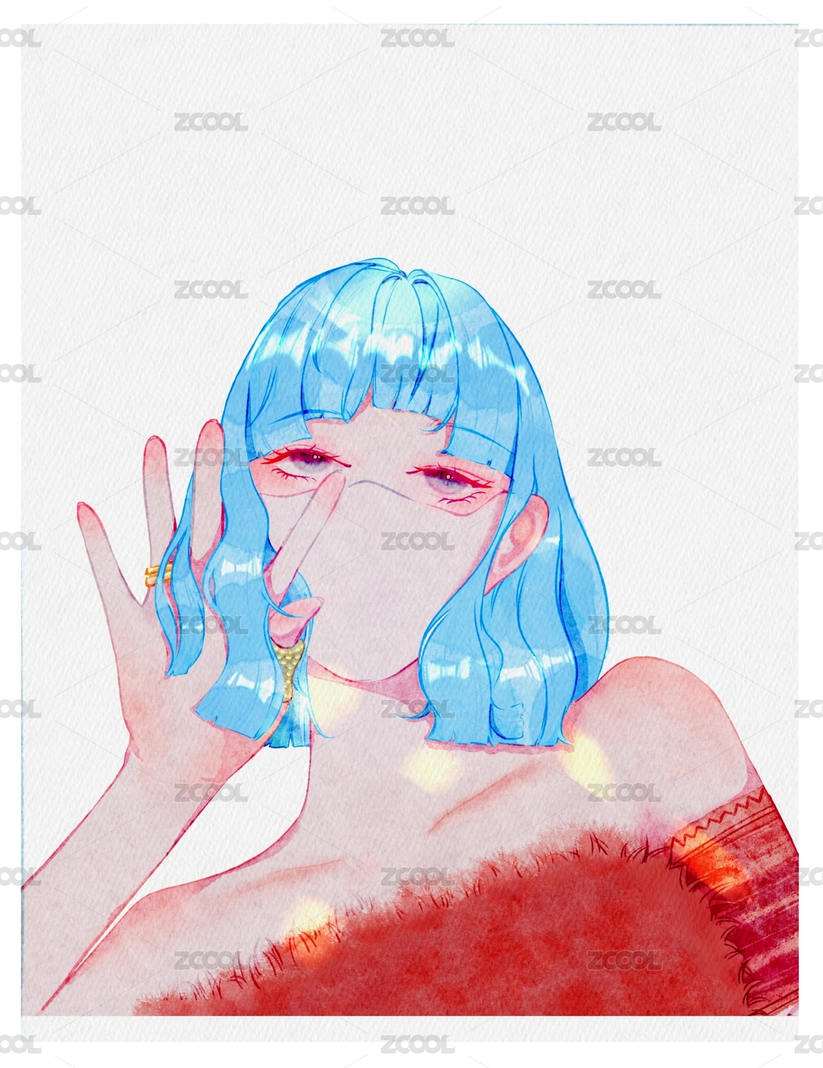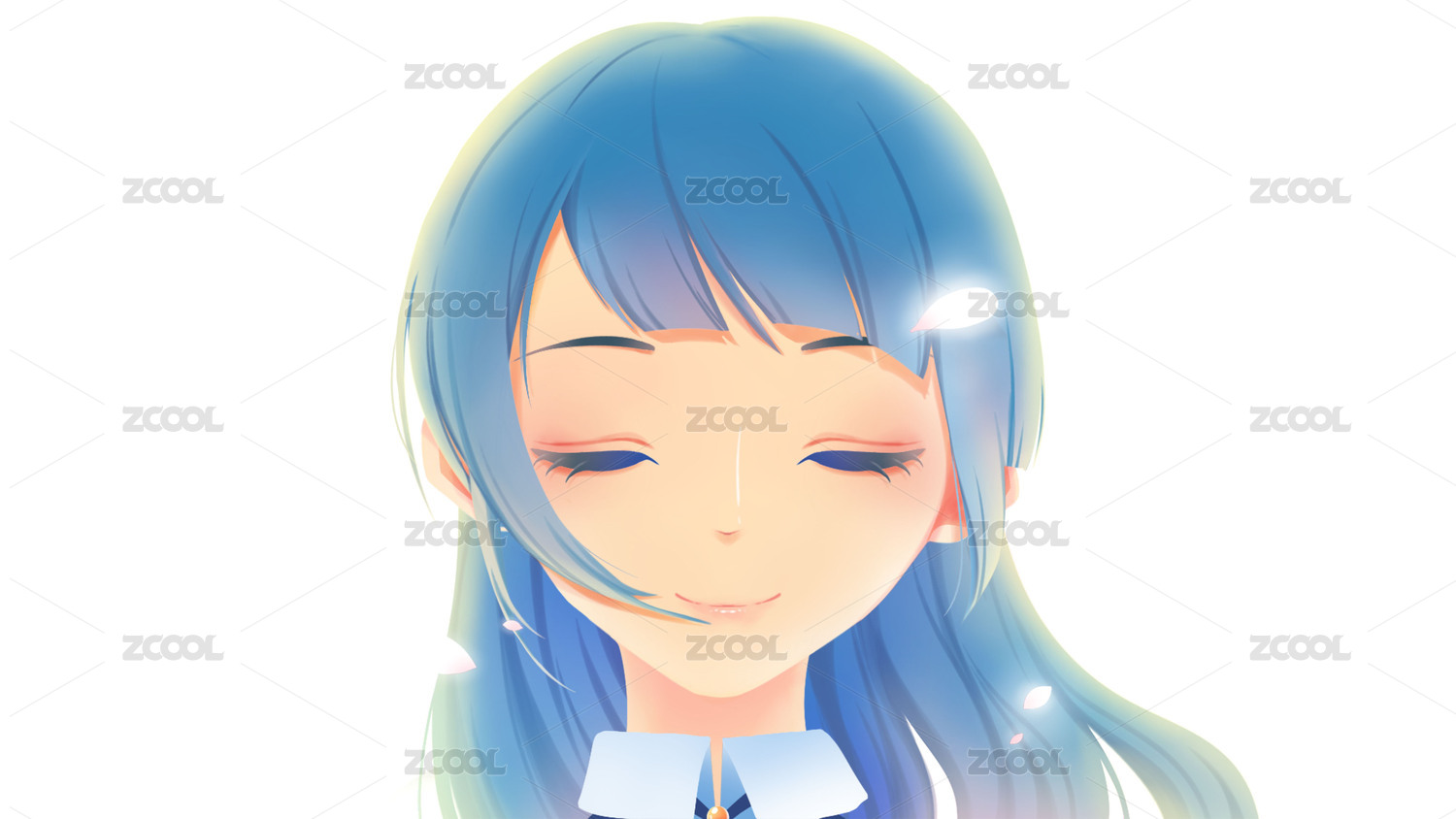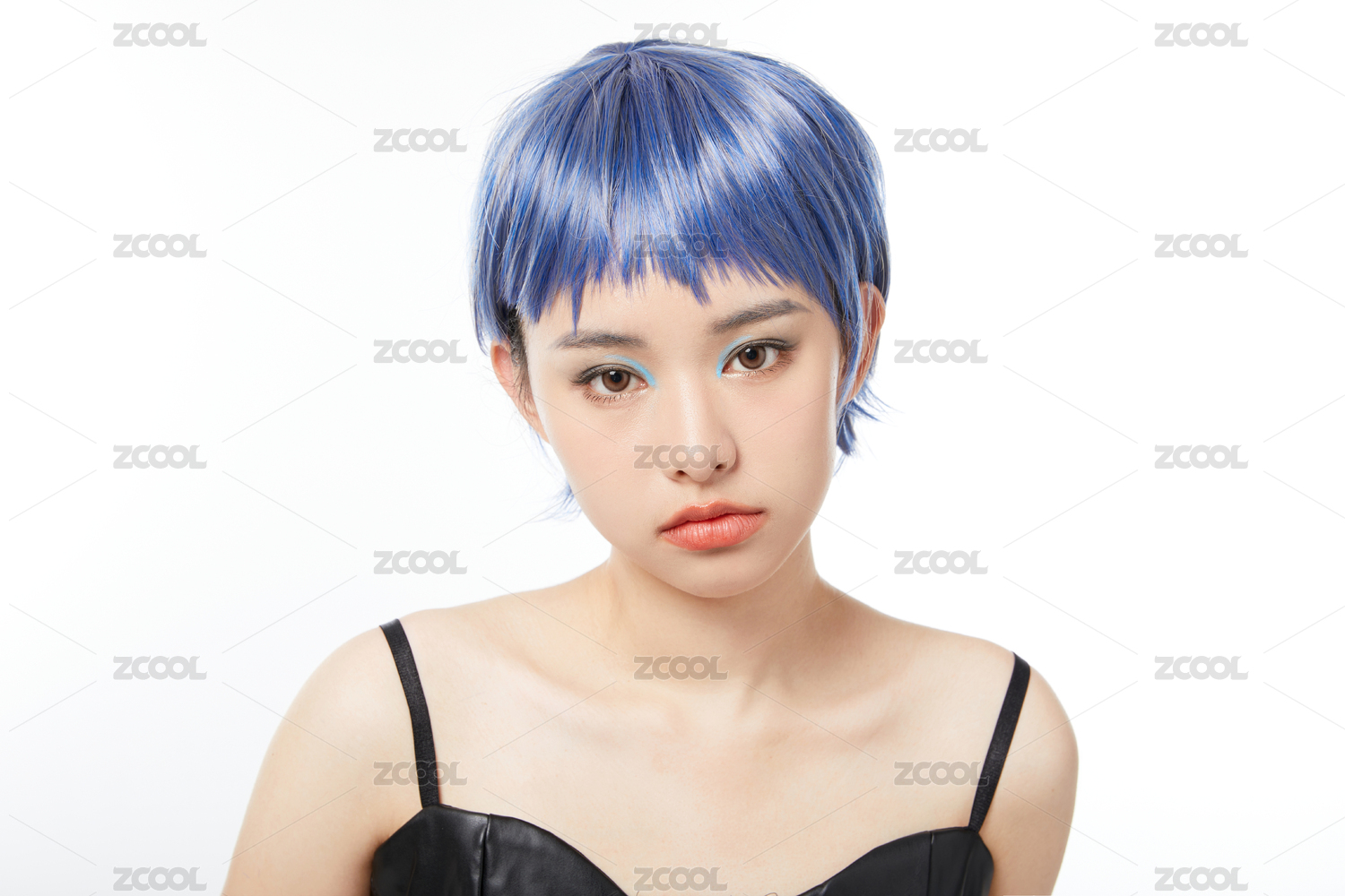 蓝发女孩半身形象照