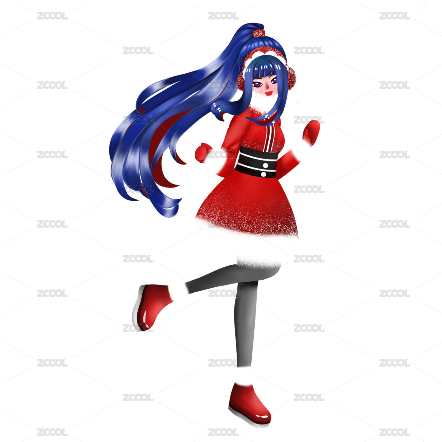 蓝发开朗的圣诞女孩