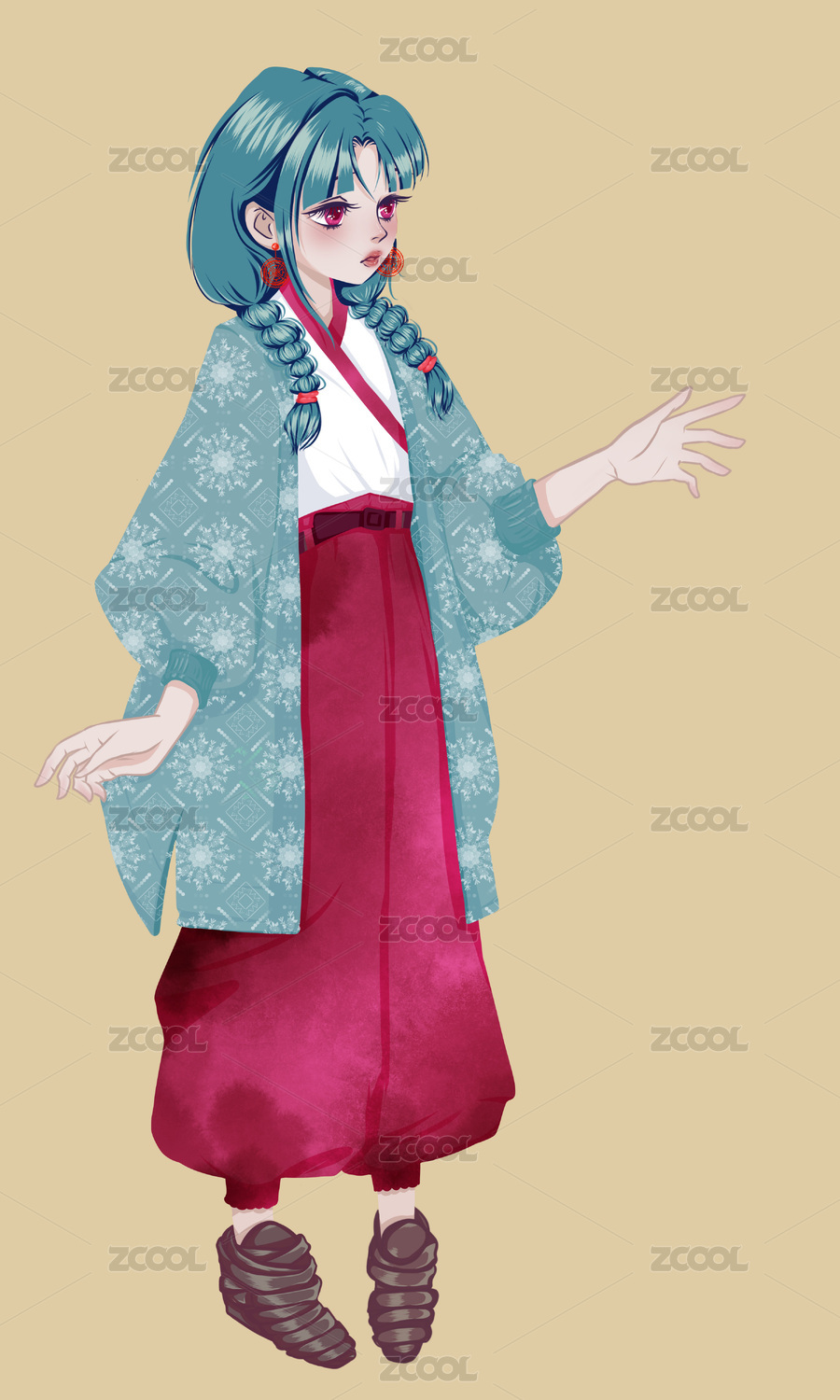 蓝发的国潮风少女立绘