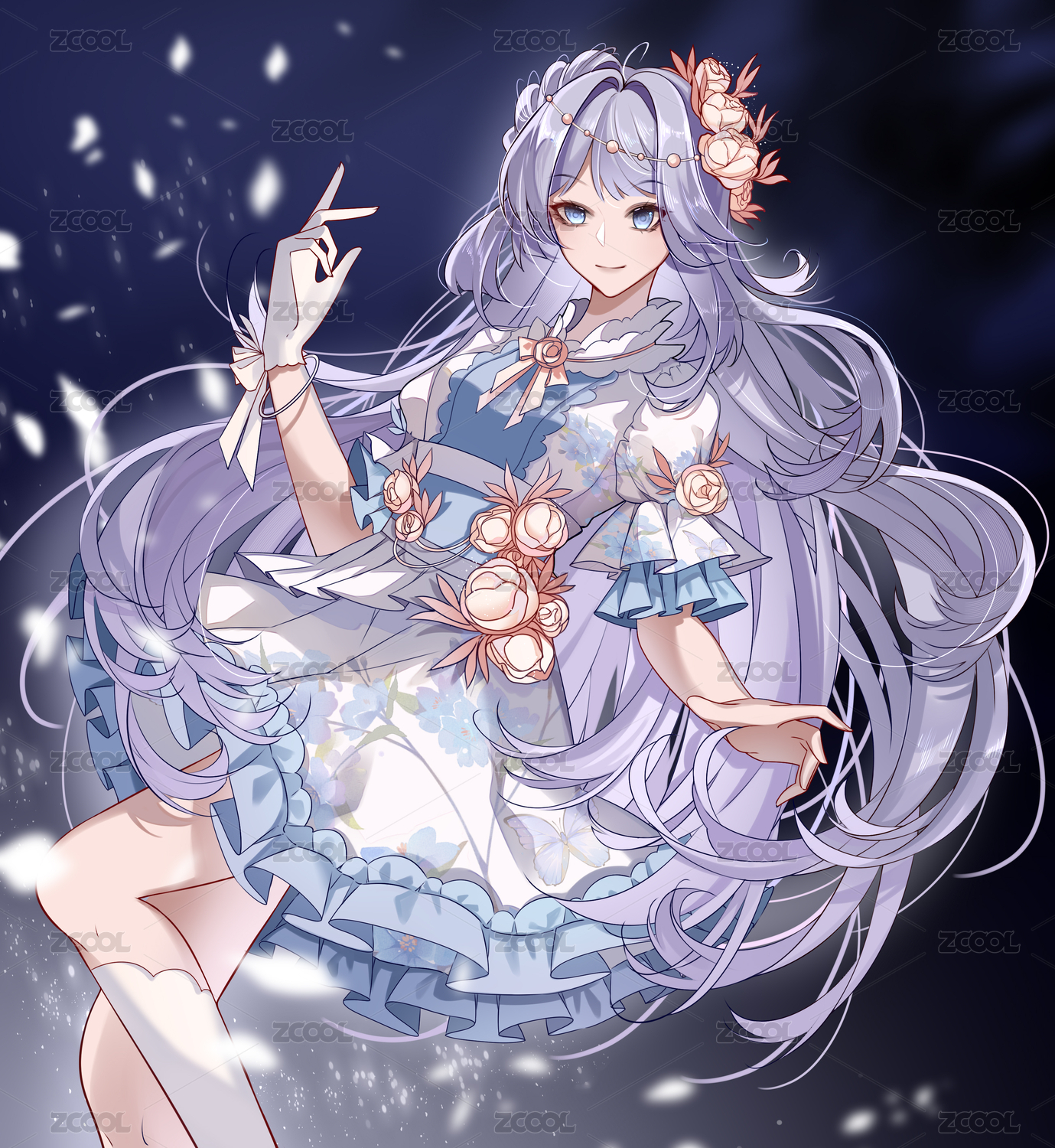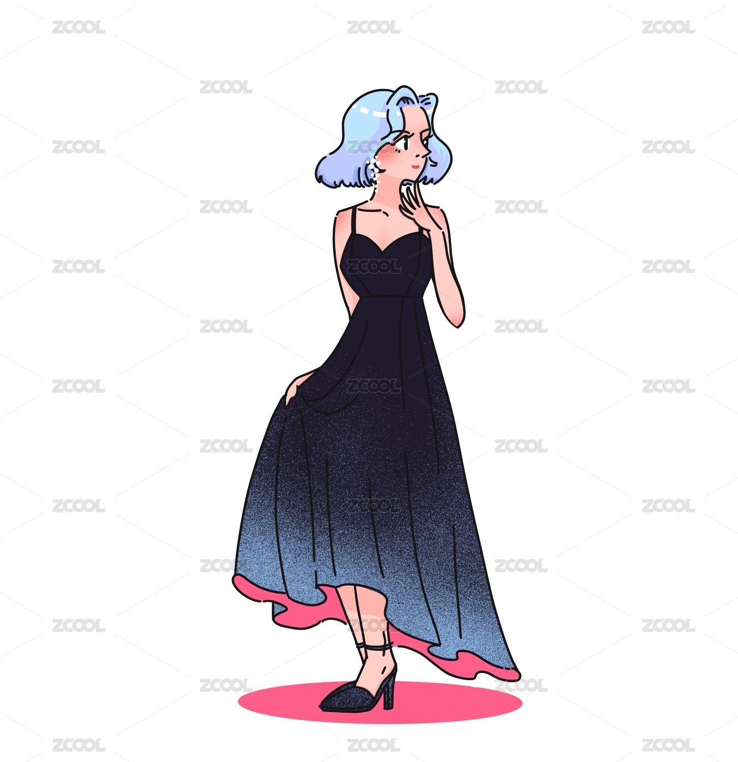 晚礼服蓝发女孩