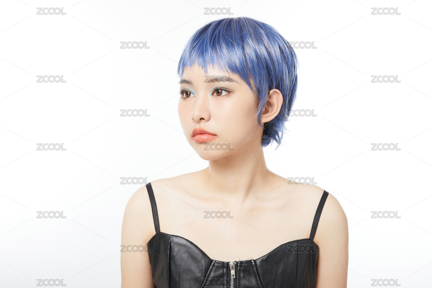 皮夹克超酷蓝发女孩