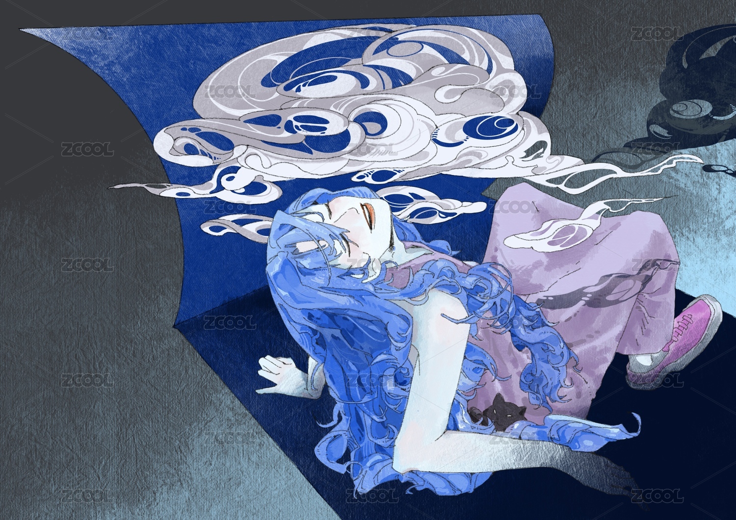 蓝发的少女