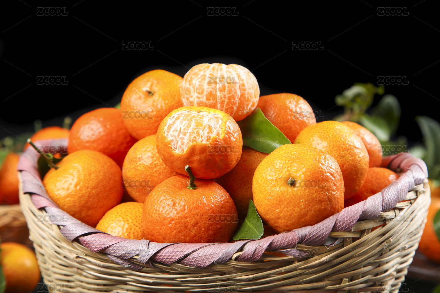 黑底上放着一篓四会砂糖橘