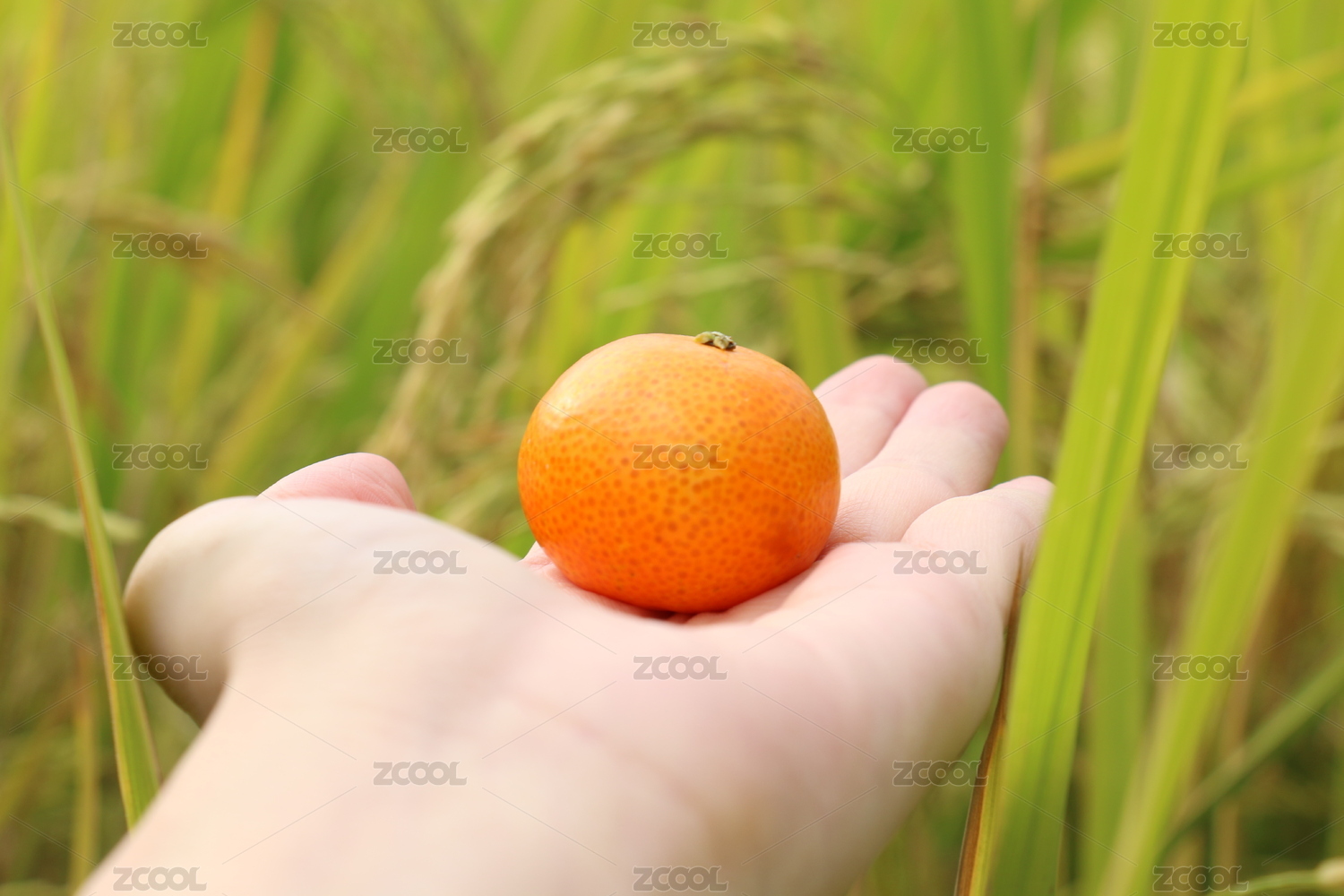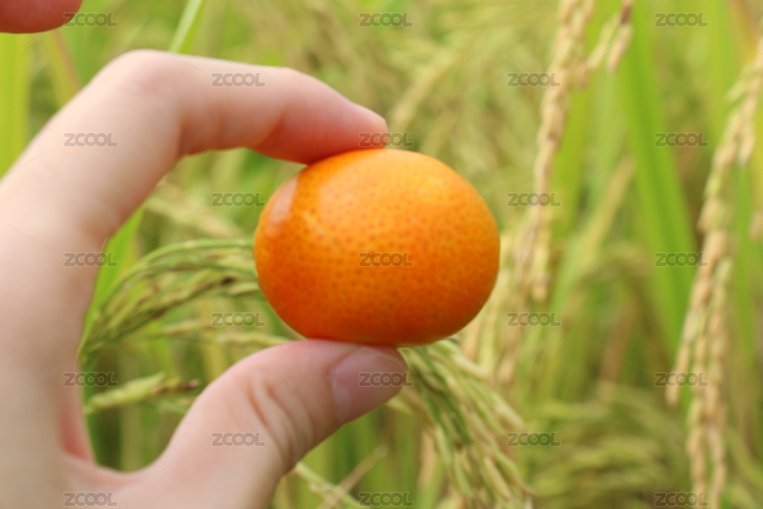 在绿色田野里拍摄的砂糖橘