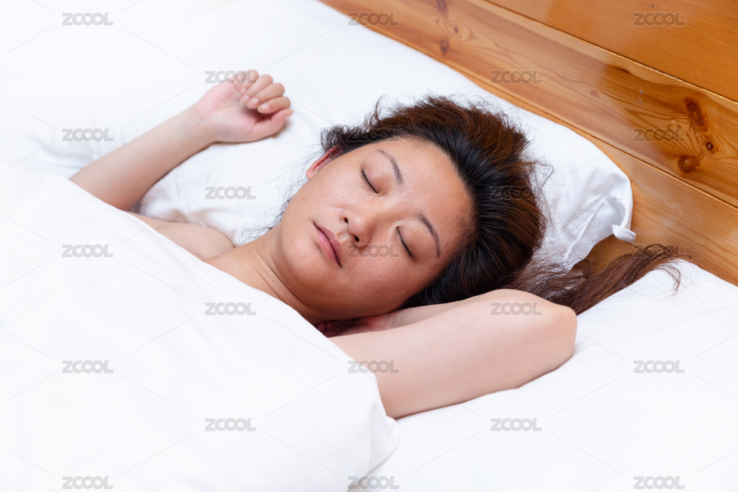 手枕在脑袋下睡觉的中国女孩