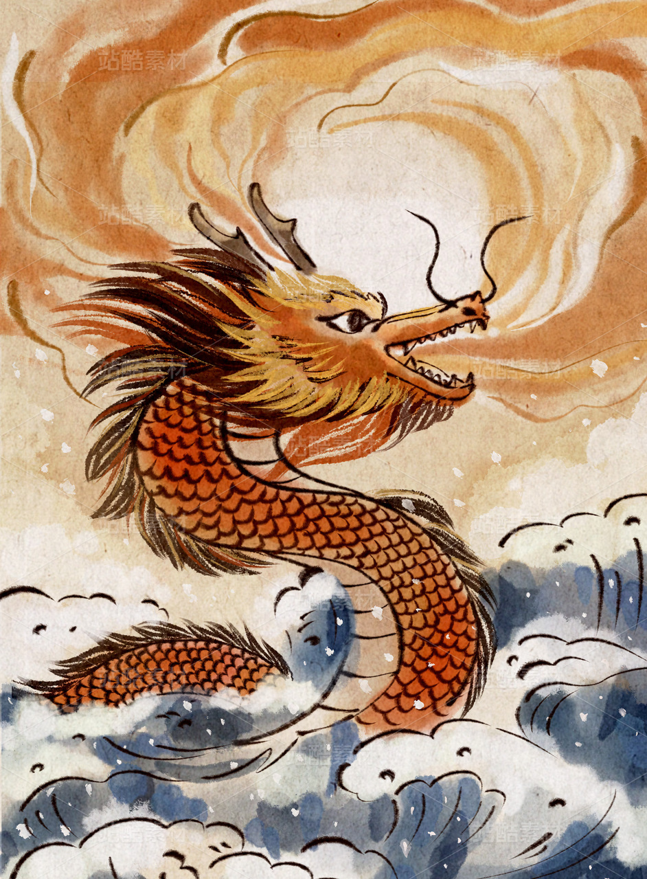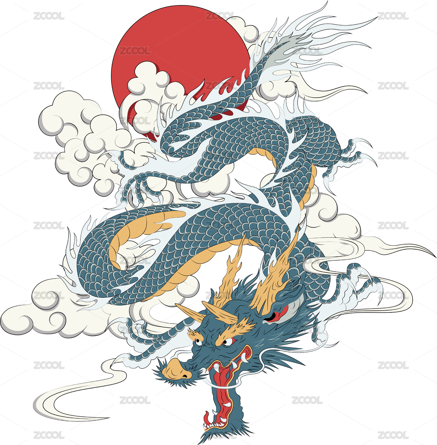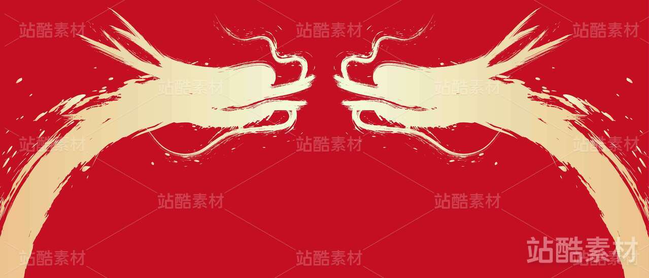 双喜龙凤祥云盘肠纹吉祥喜庆纹样国潮插画