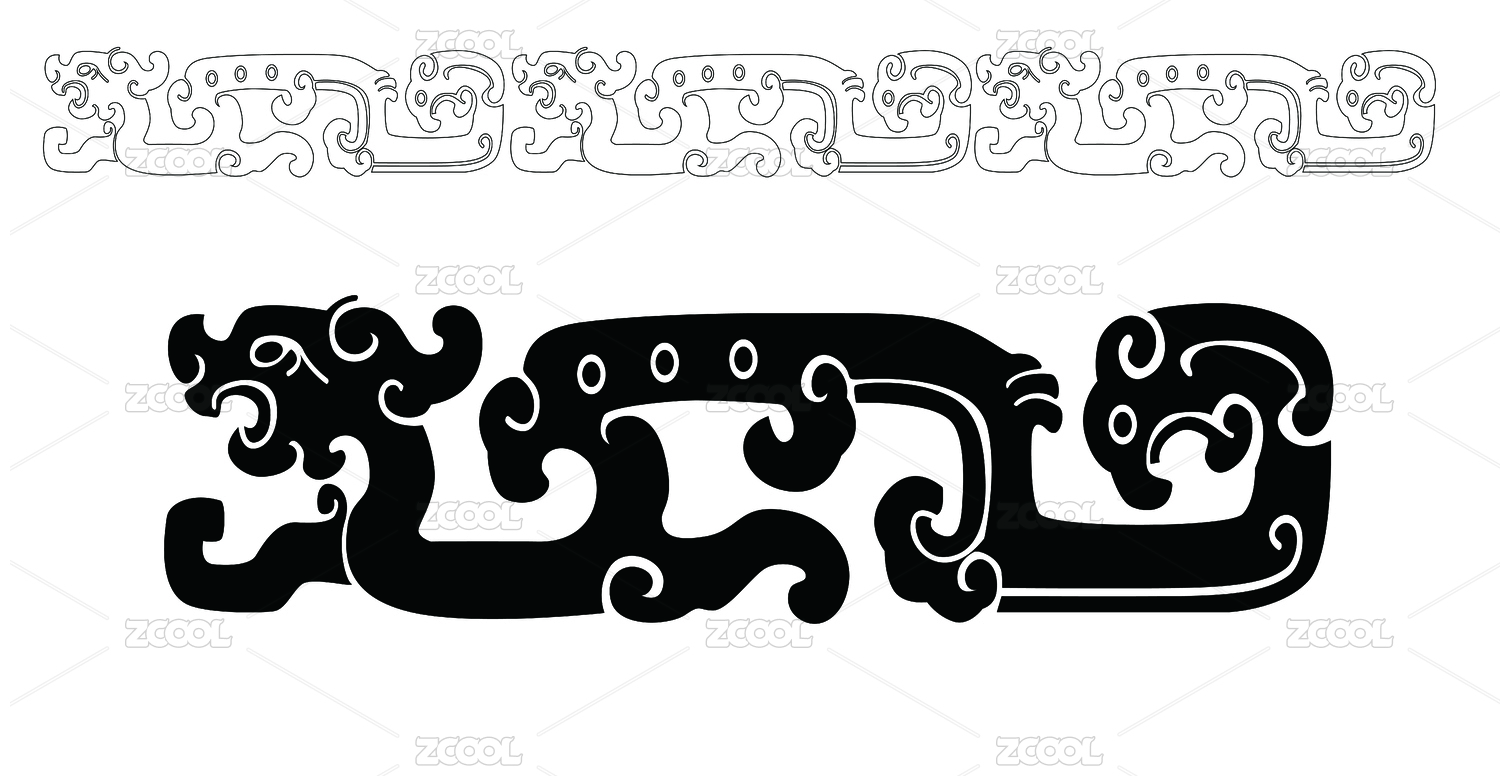 传统的黑白装饰夔龙纹图案 白色背景