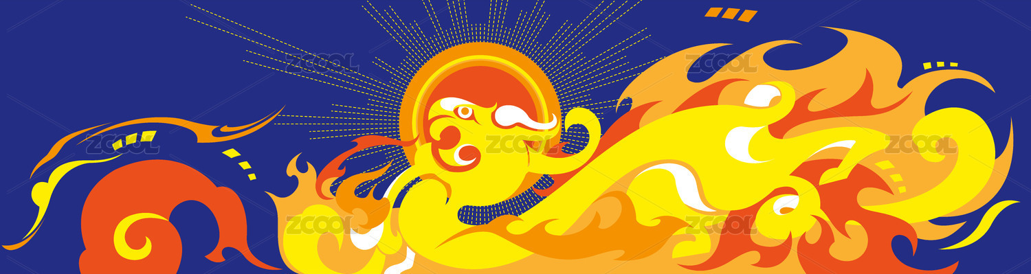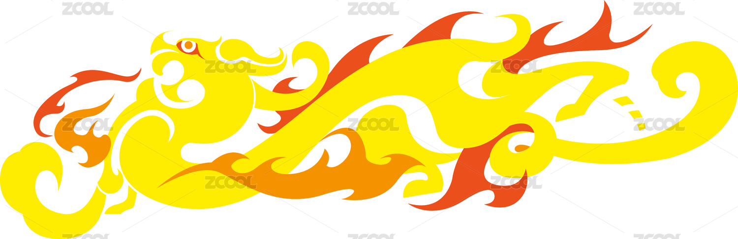 商朝战国青火焰祥云夔龙纹奔跑矢量插画图案