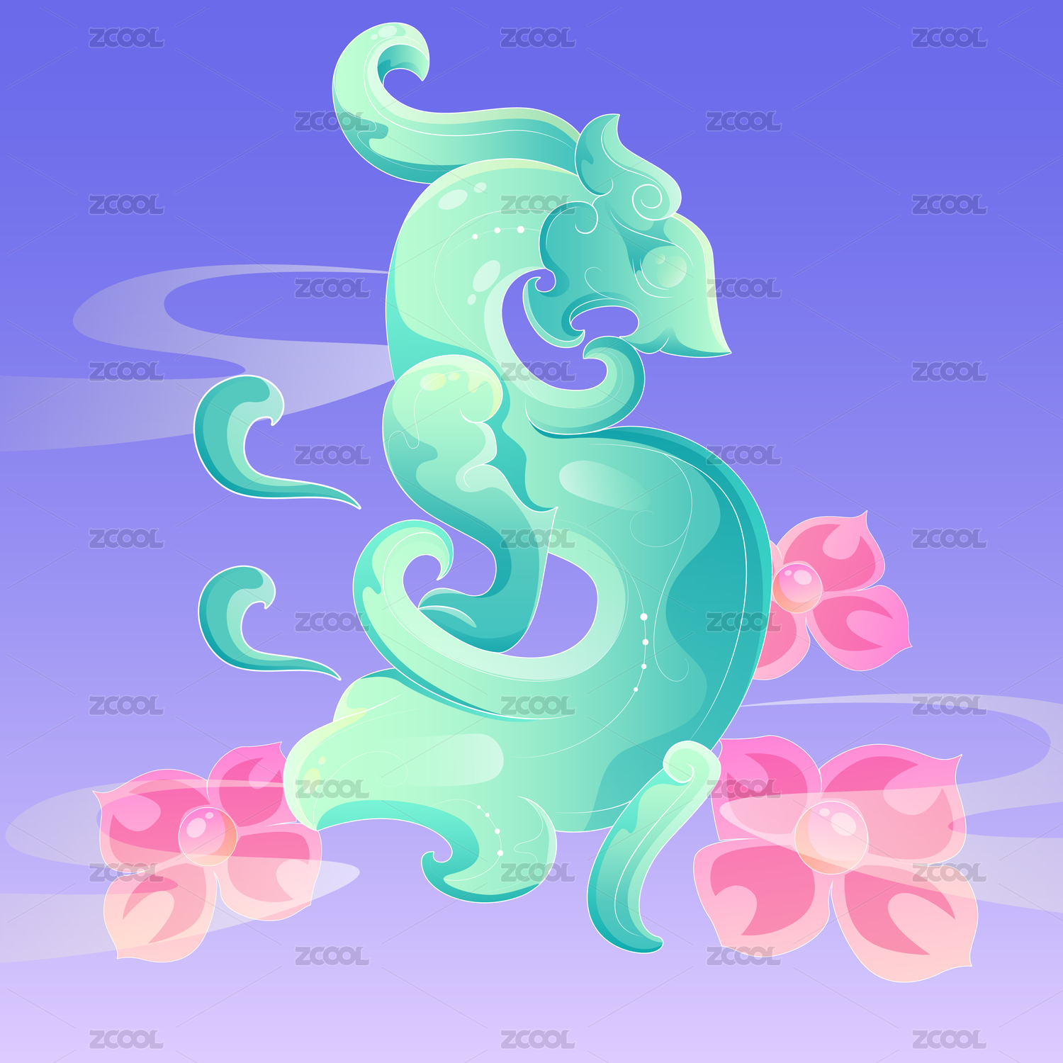 夔龙夔凤龙凤吉祥福寿中国纹样国潮插画