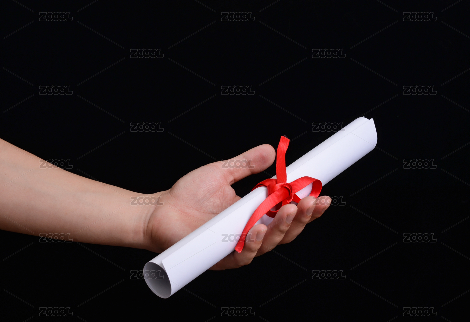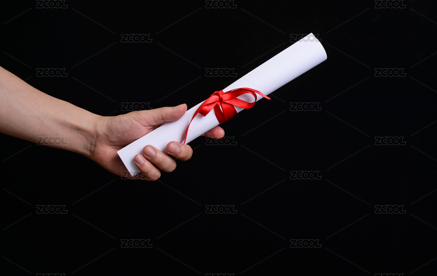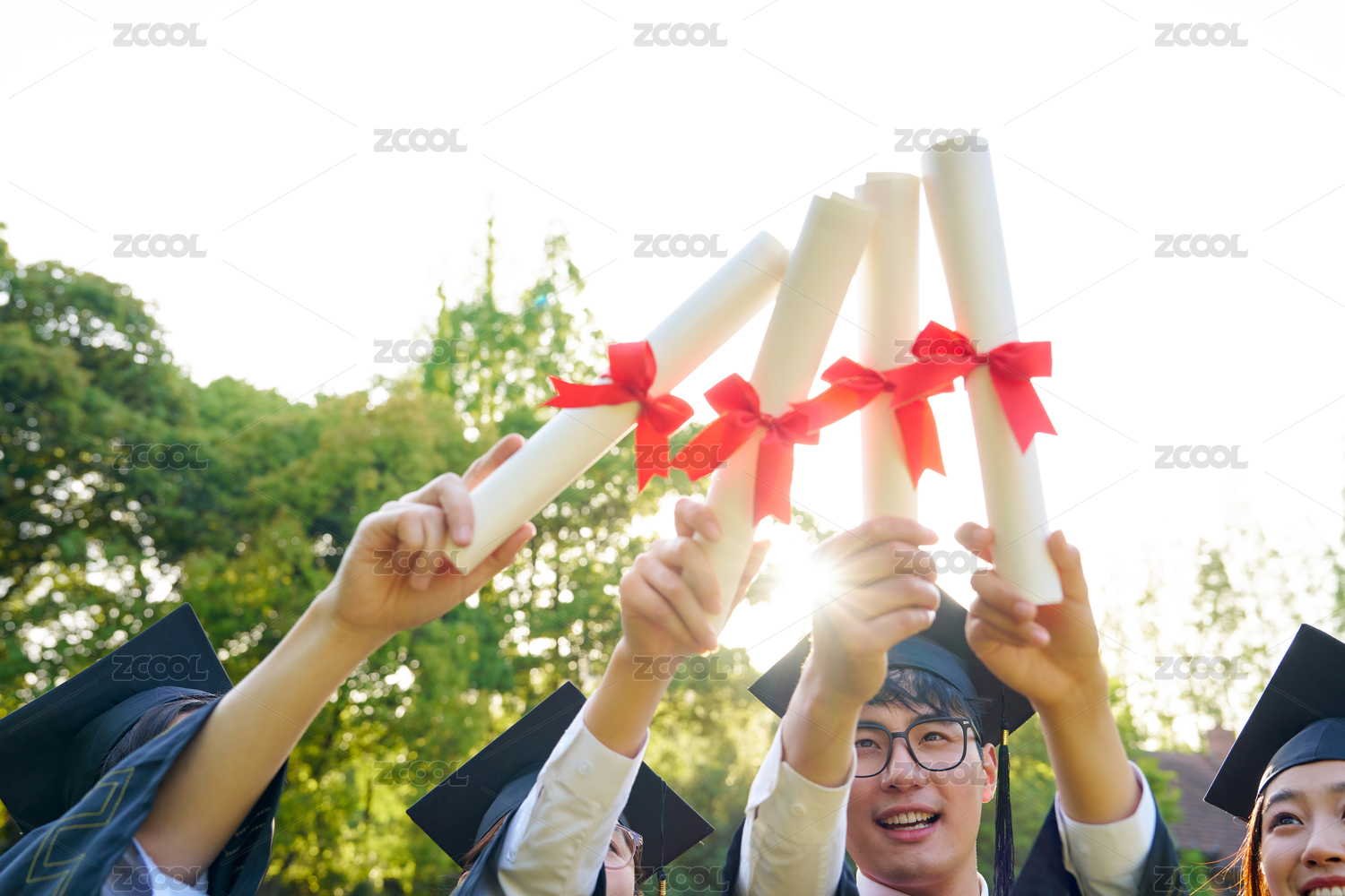 教室内毕业生穿着毕业服拿着毕业证书教育概念