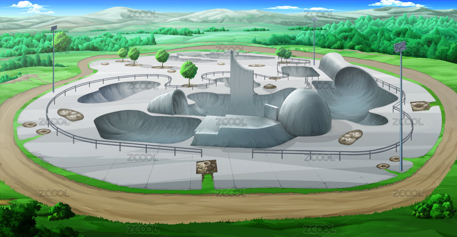 欧美风写实二维动画场景轮滑场