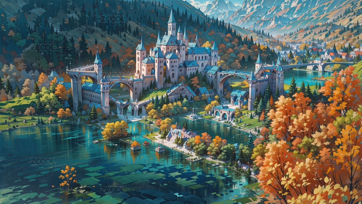 旁边有瀑布河流的城堡
