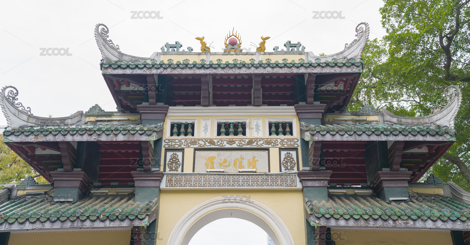 广西柳州柳侯公园古朴的南大门全景