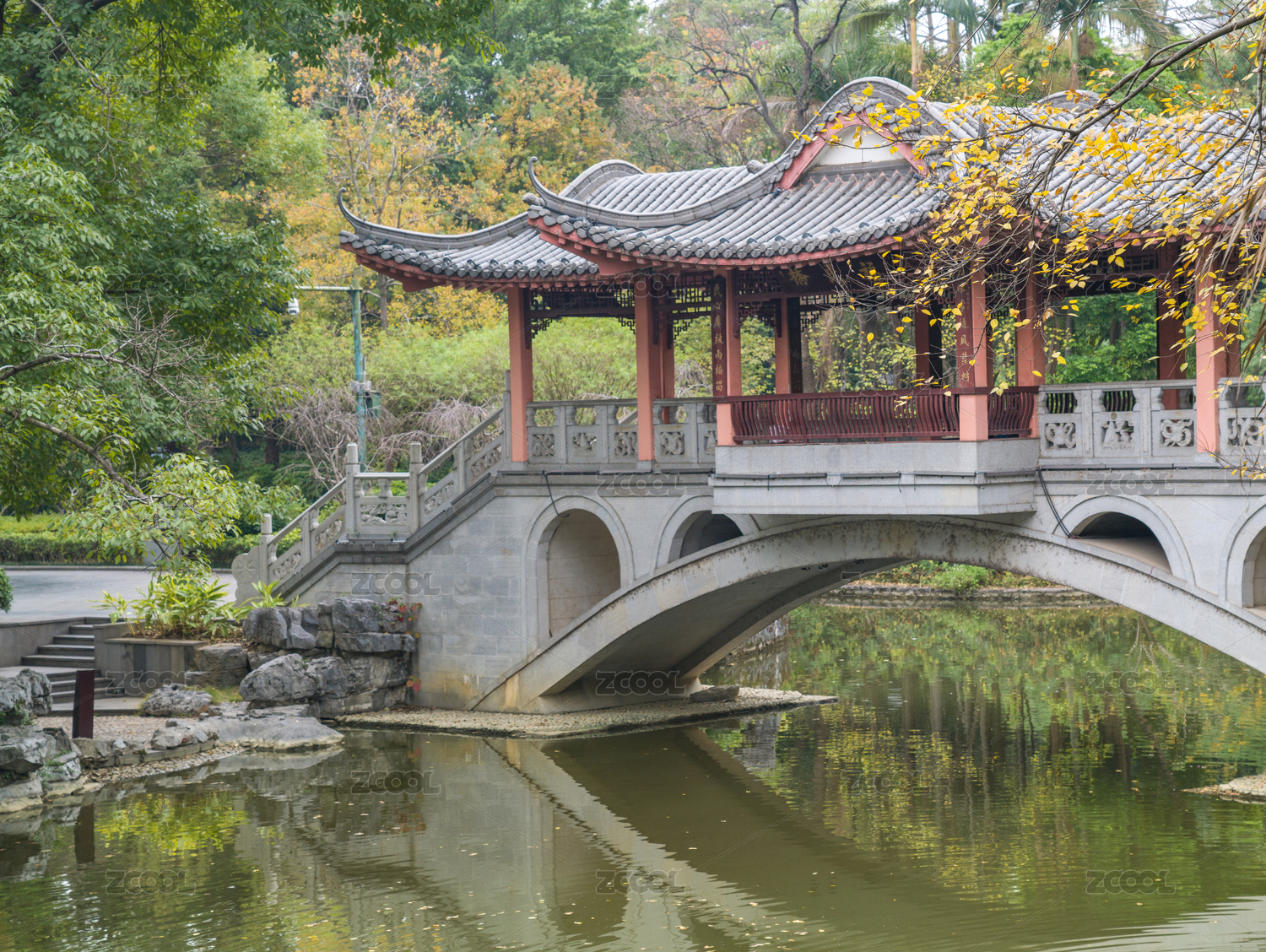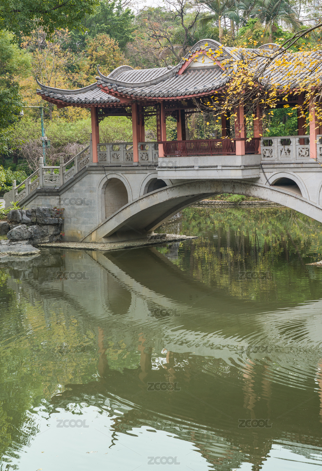 广西柳州柳侯公园内精美的福民桥