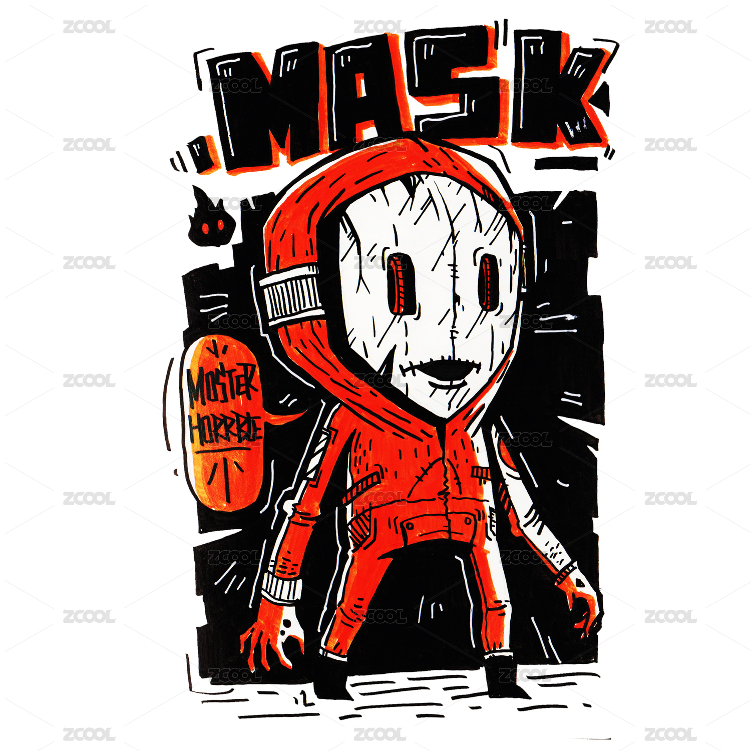 戴棒球帽穿夹克衫的笑脸可爱花朵