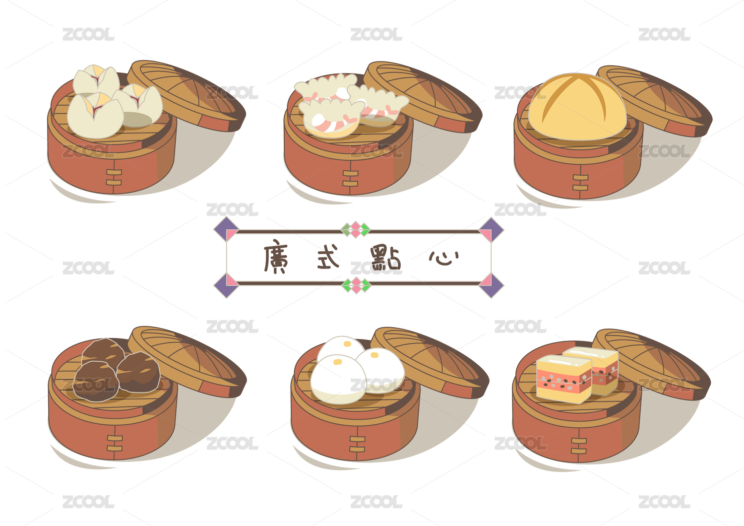 矢量卡通广东早茶点心美食
