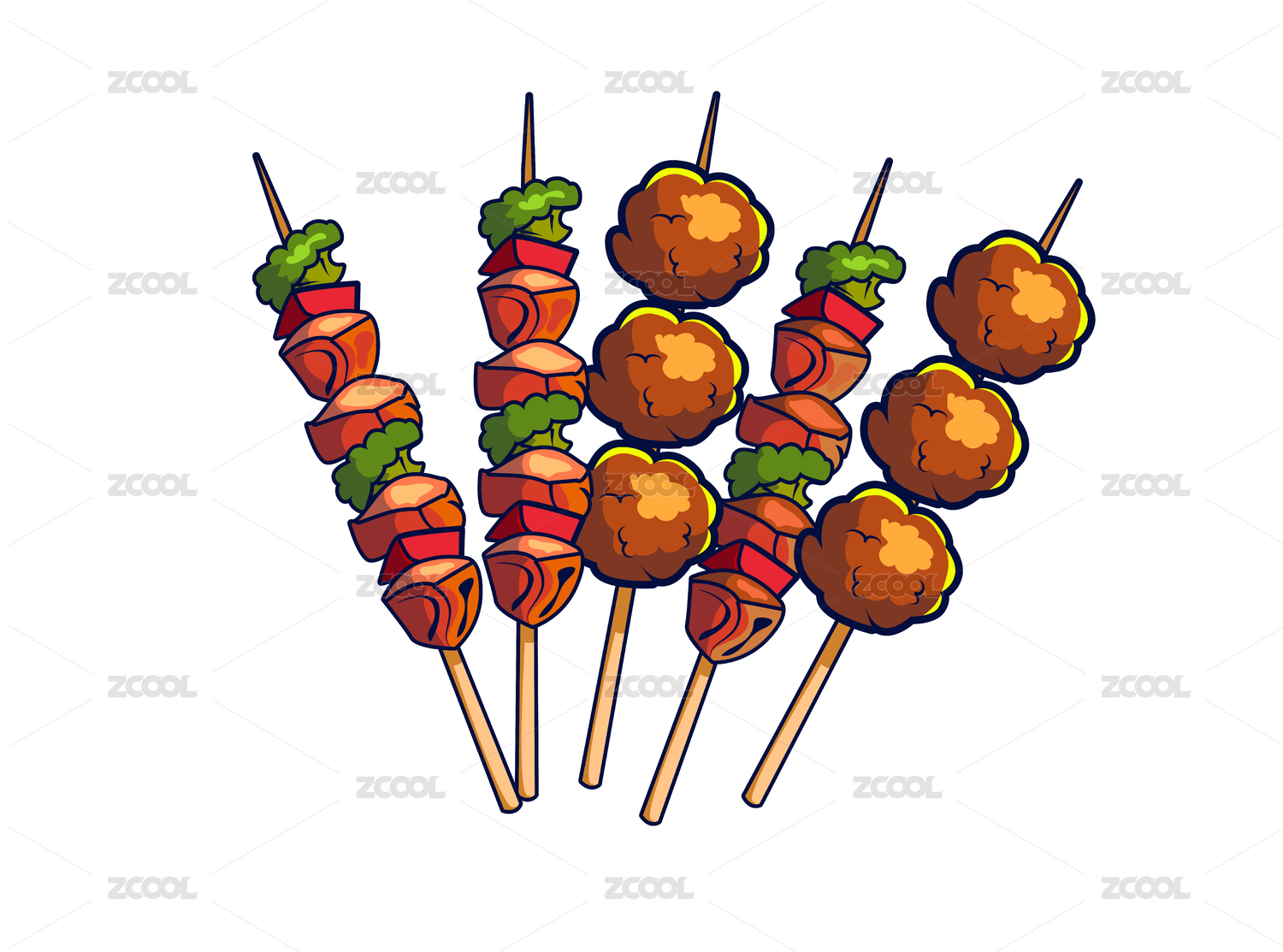 羊肉串烤肉串矢量插画元素