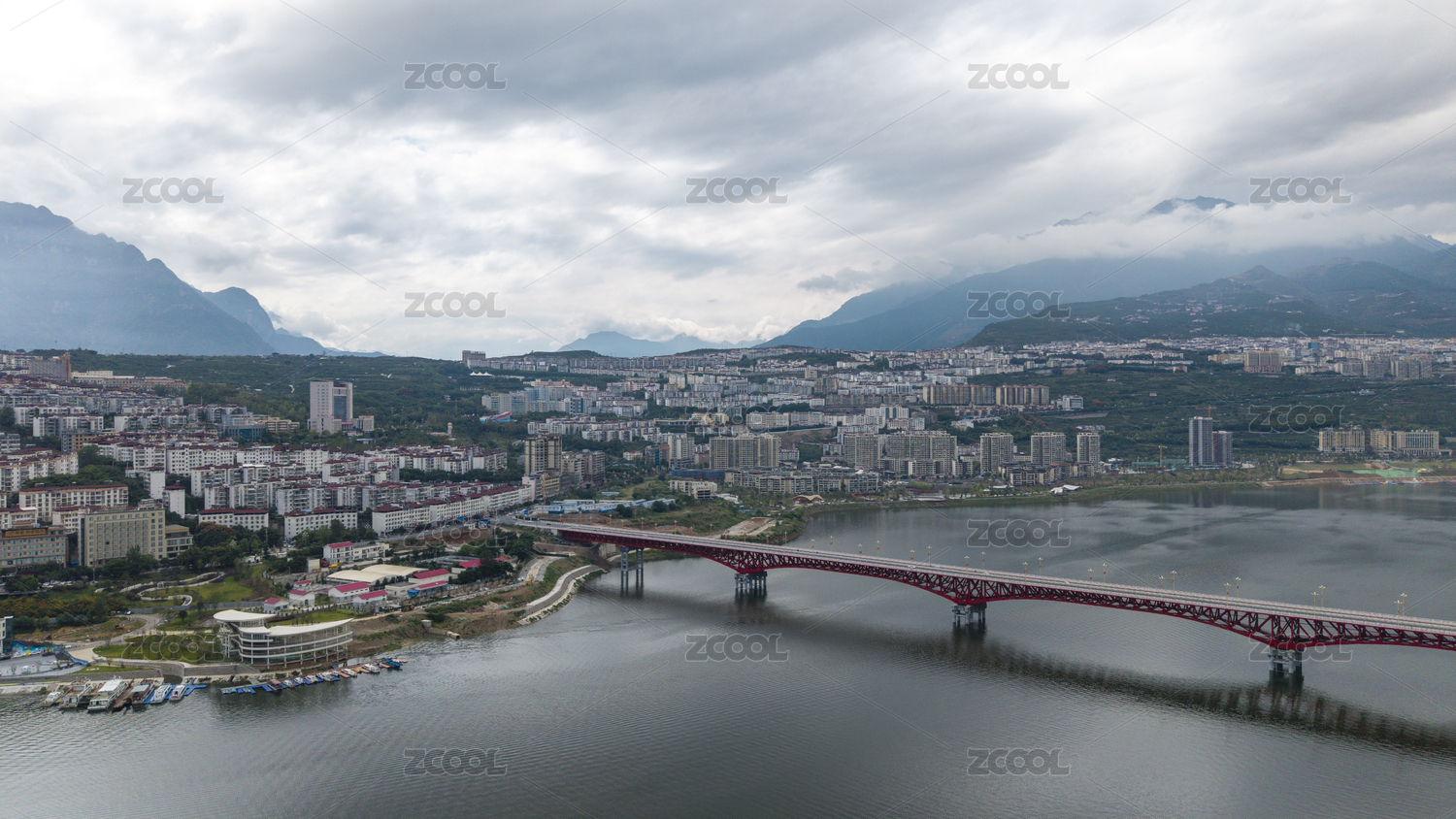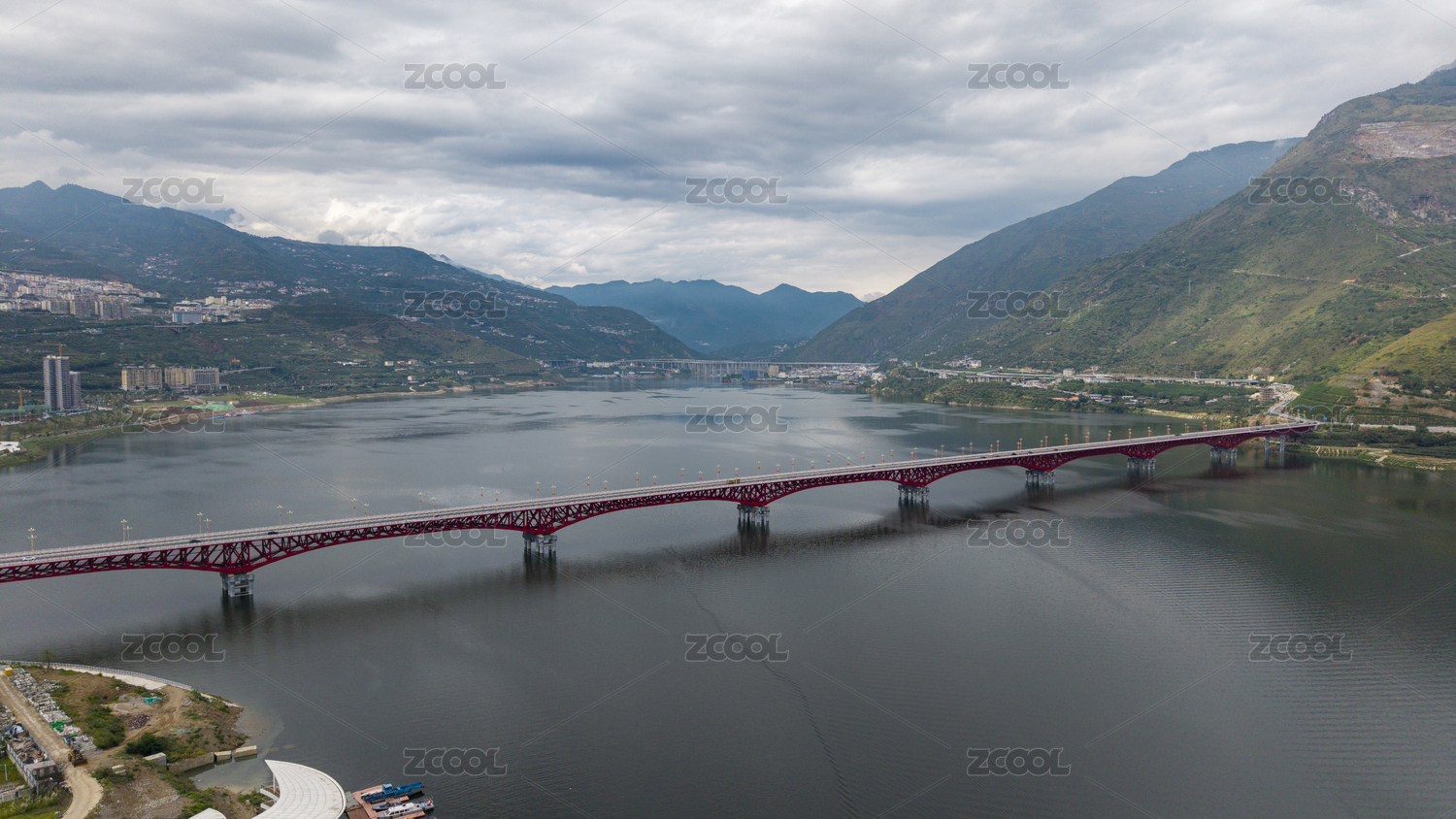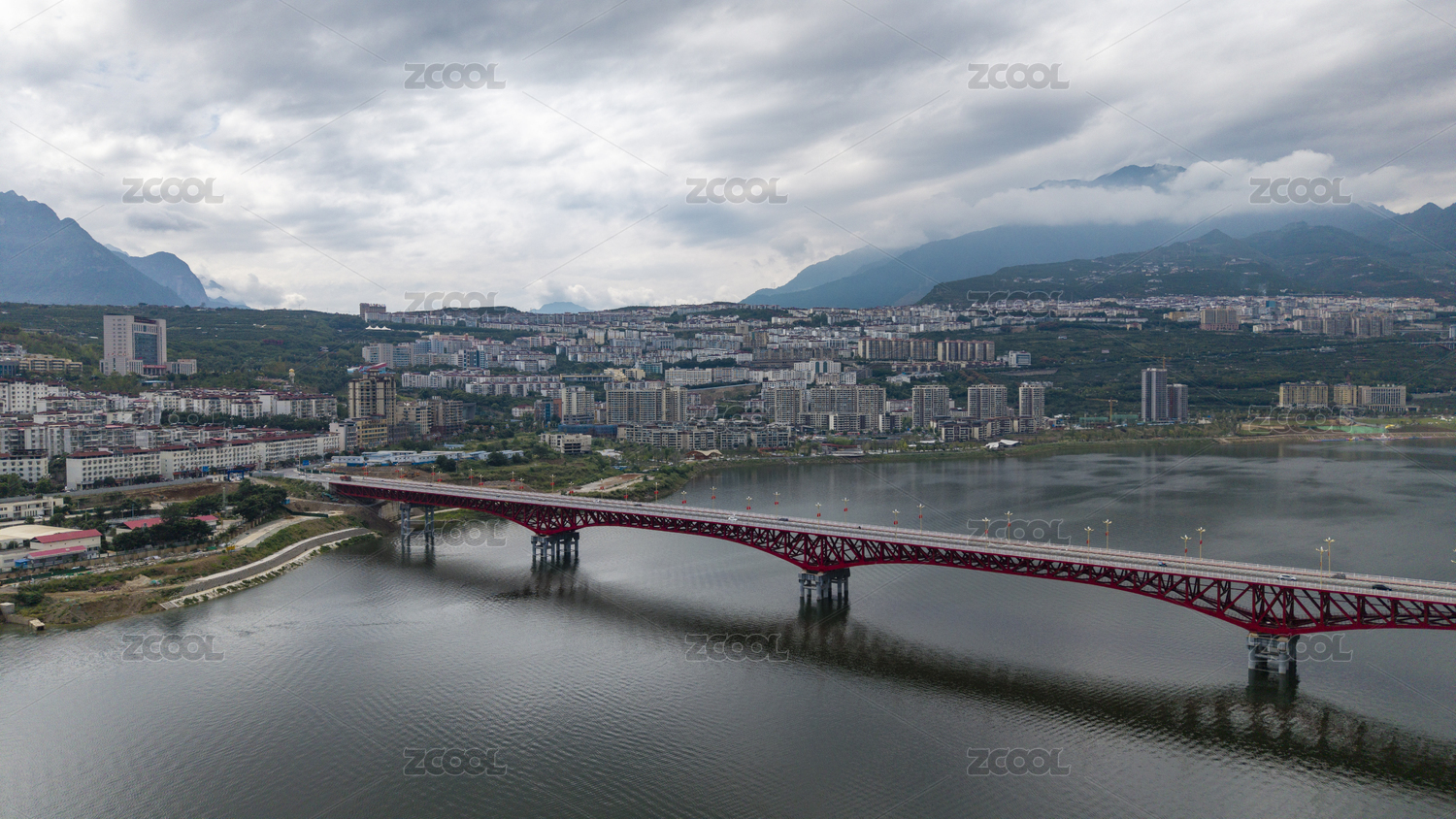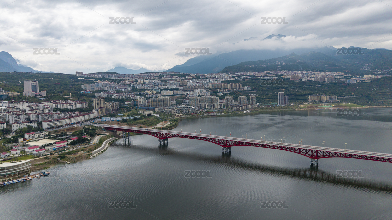航拍四川雅安市汉源湖边新县城风光