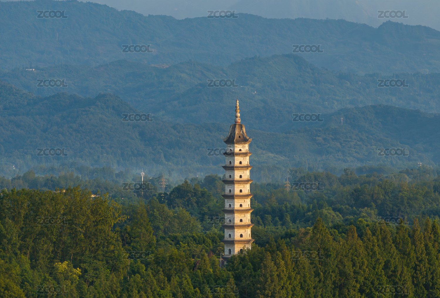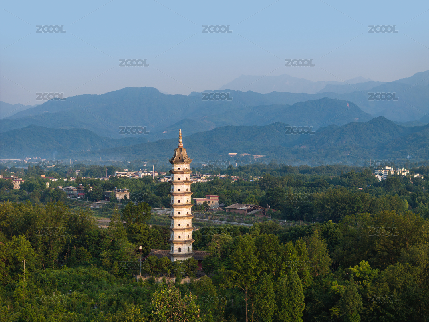 中国四川成都崇州怀远镇汉源洄澜塔航拍图